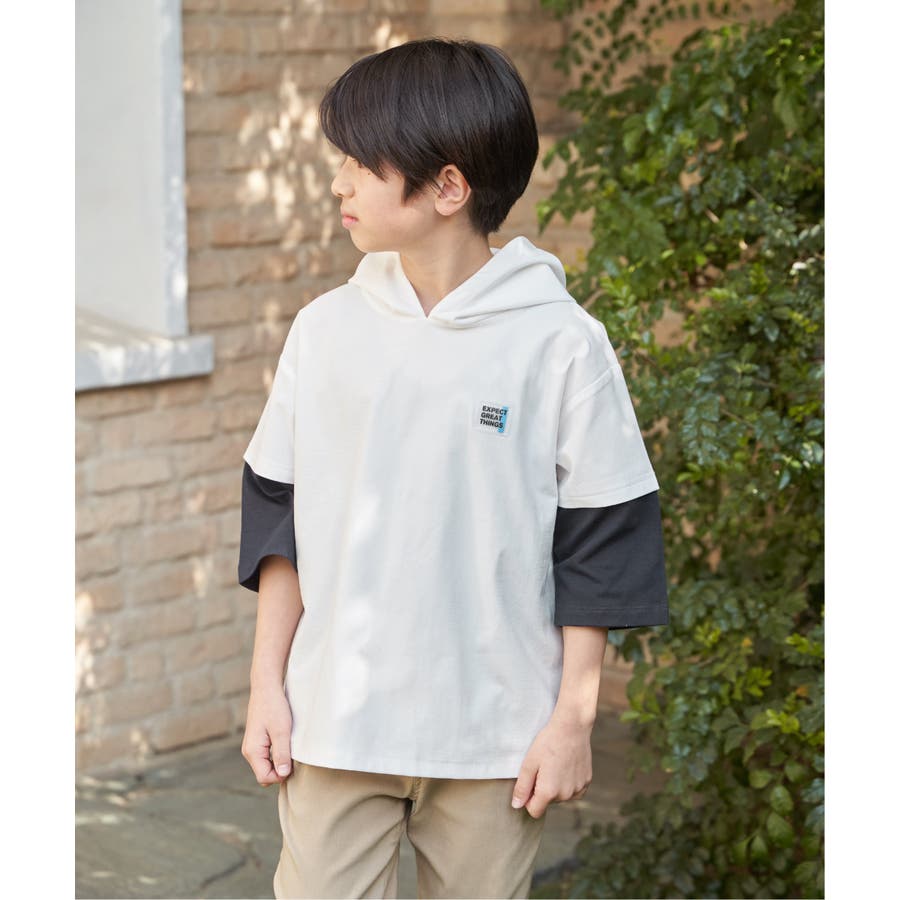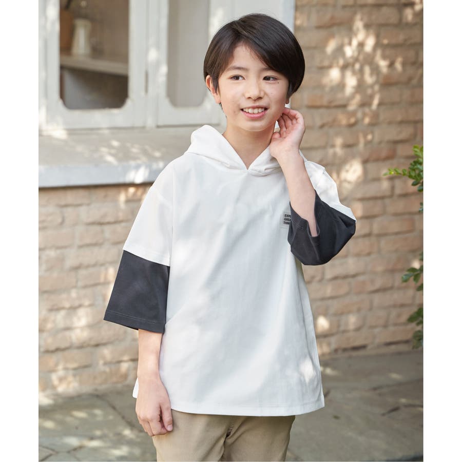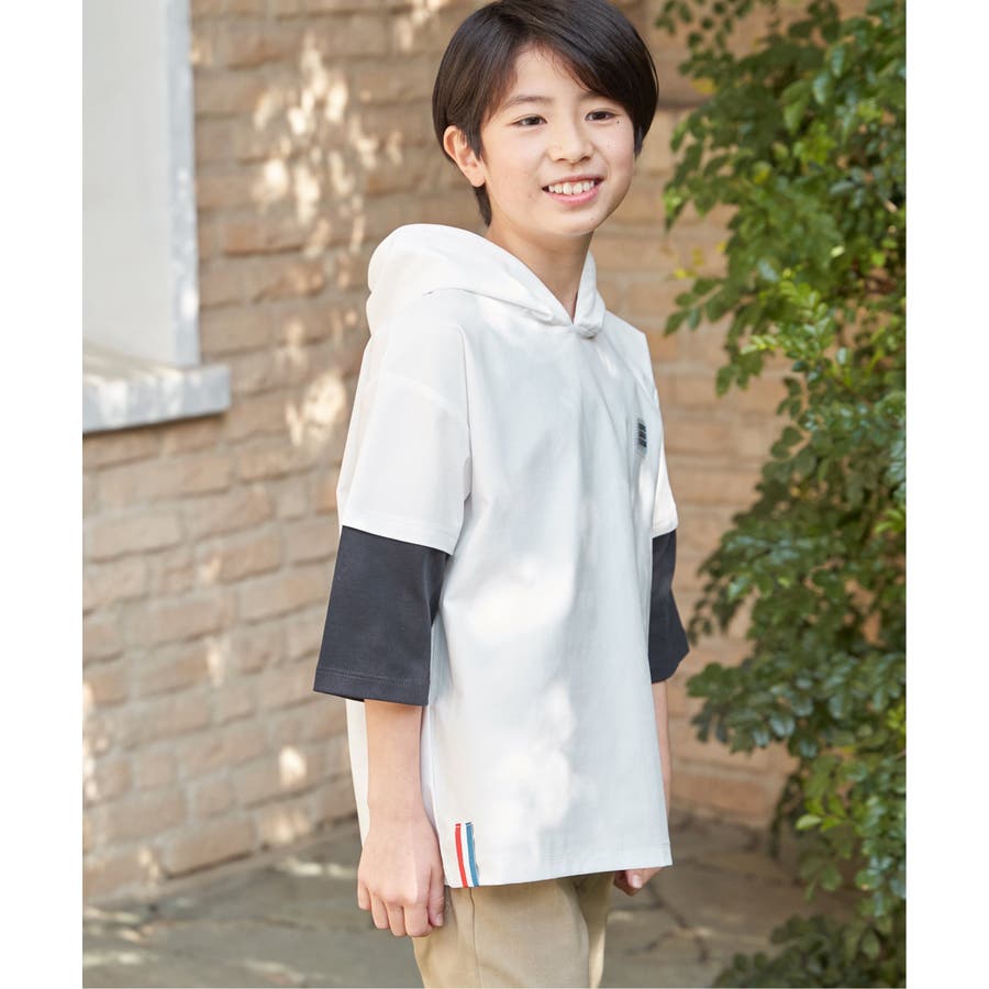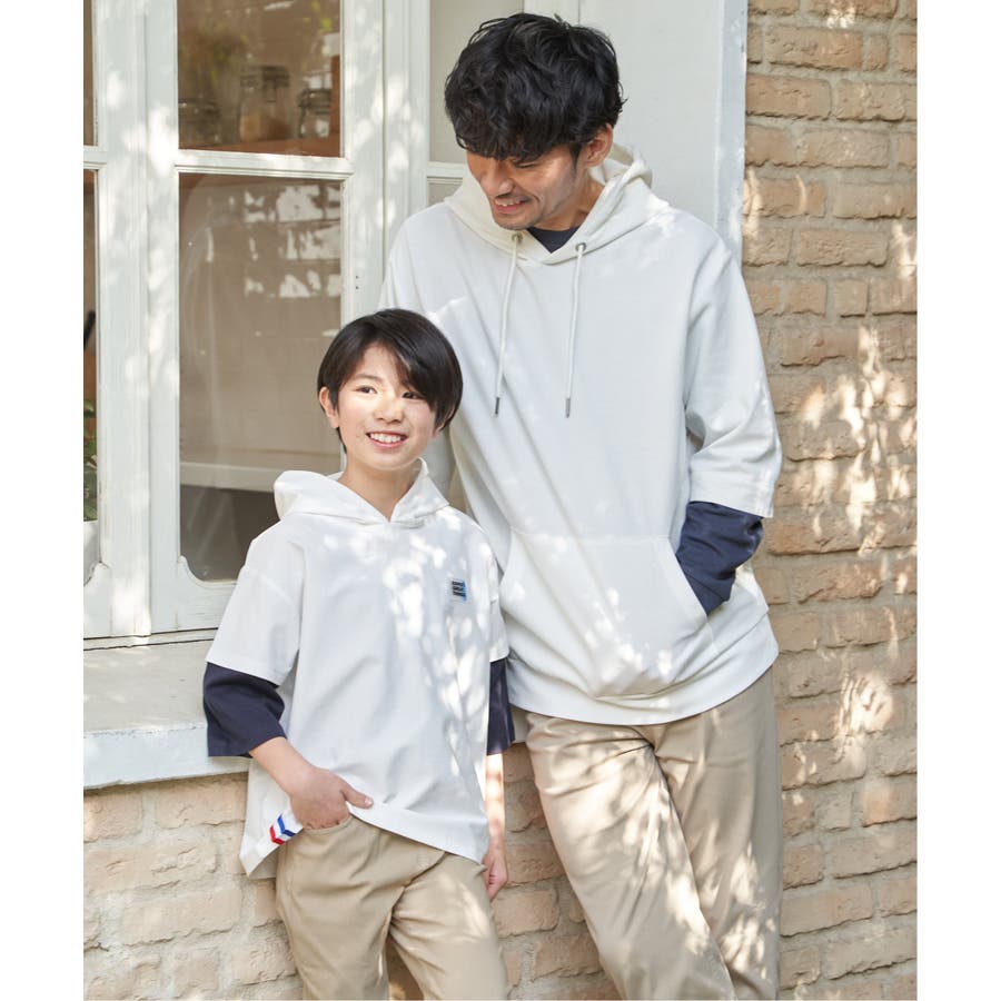 【親子コーデ】冷感6分袖レイヤードパーカー(120~160cm)