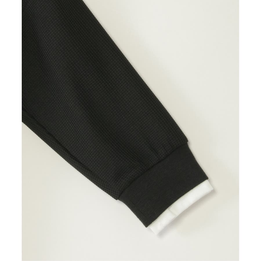 袖口とネックはフェイクレイヤード仕様で、一枚で重ね着風のスタイリングが完成します。