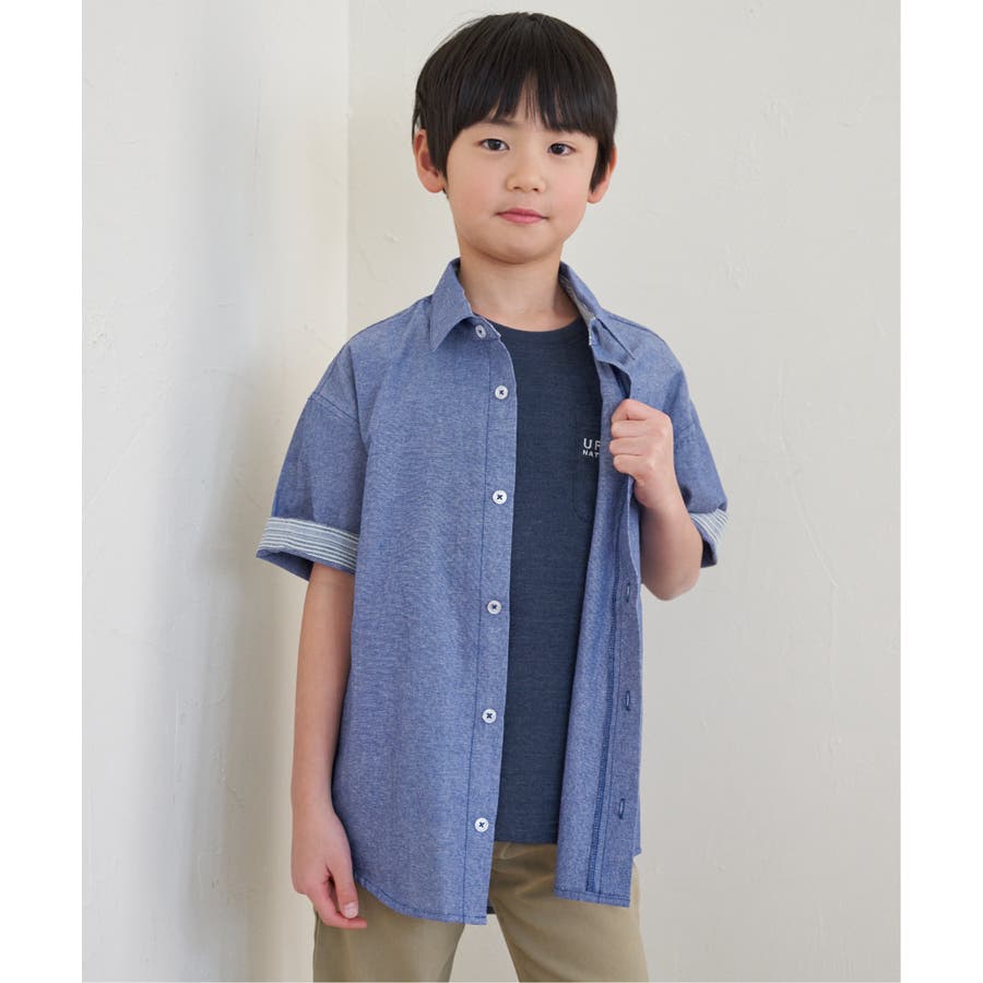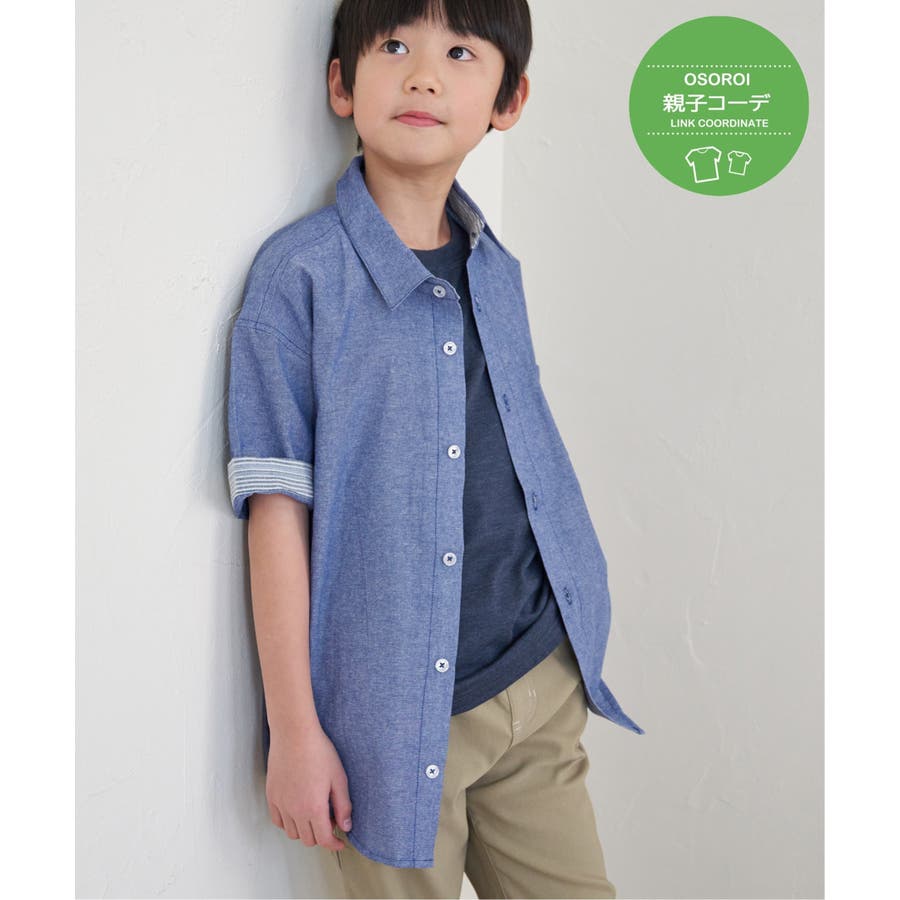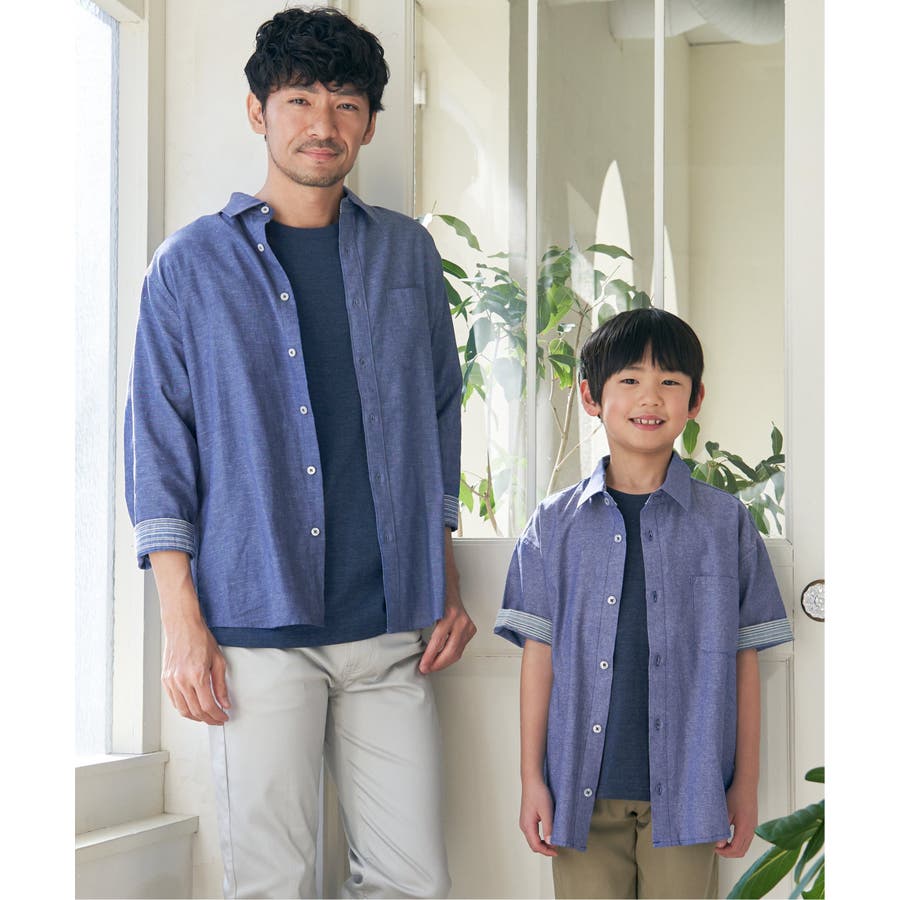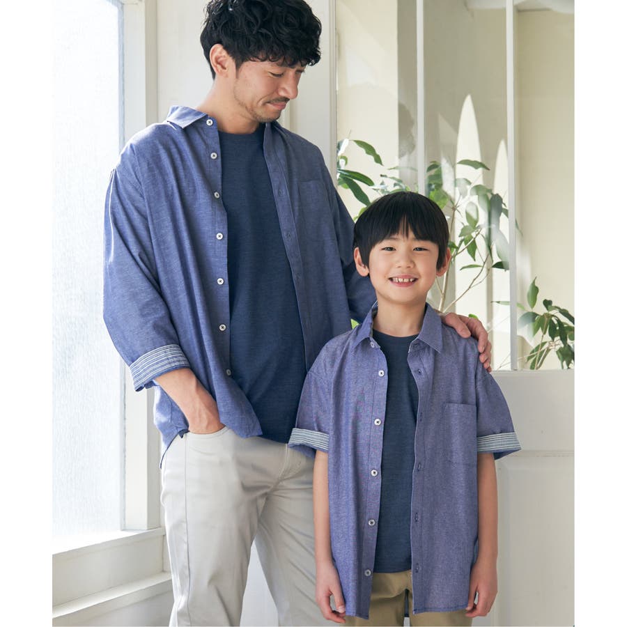 【親子コーデ】シャンブレー5分袖シャツ(120~160cm)