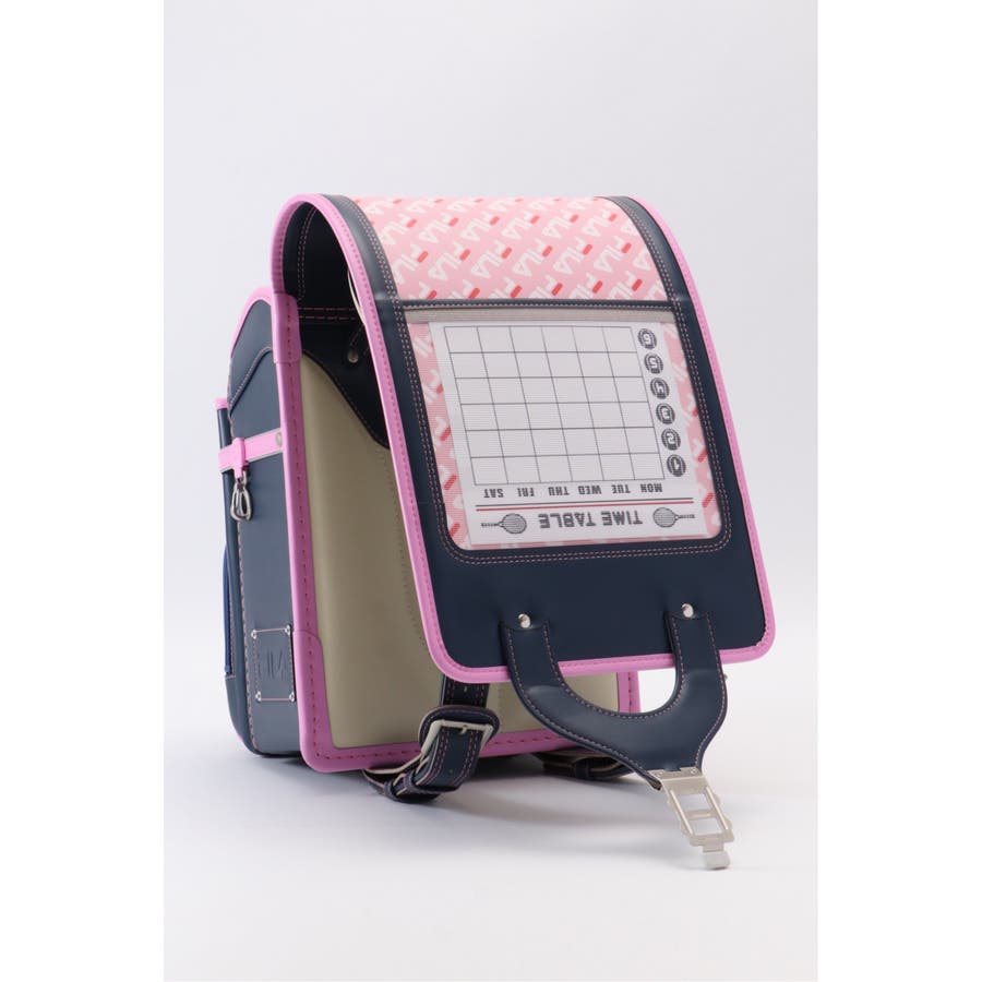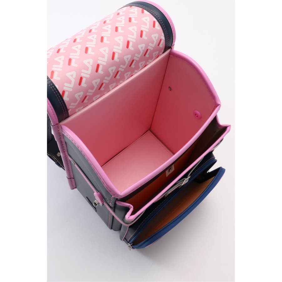 サイドと背中の部分の2ヶ所に、高級感のあるFILAのエンボスロゴ、ランドセルを開けると、裏地にはFILAのロゴがプリントされています。