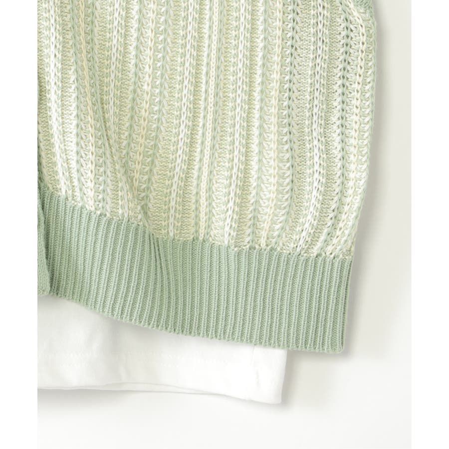 きれい色のニットベストとシンプルな無地ロンTをコーディネートした2点セットアイテム。
