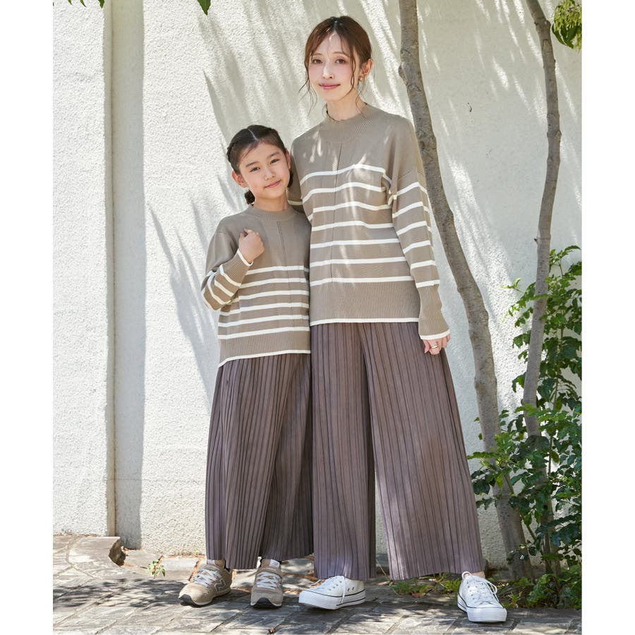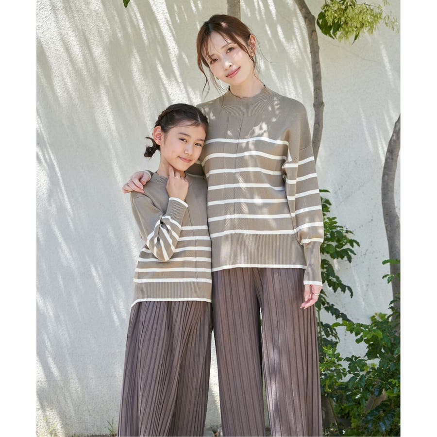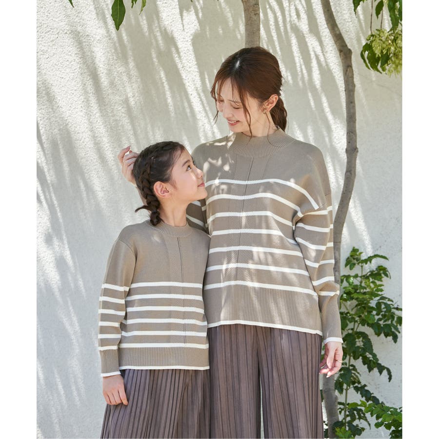 【親子コーデ】コットンMIXボーダーニットプルオーバー(120~160cm)