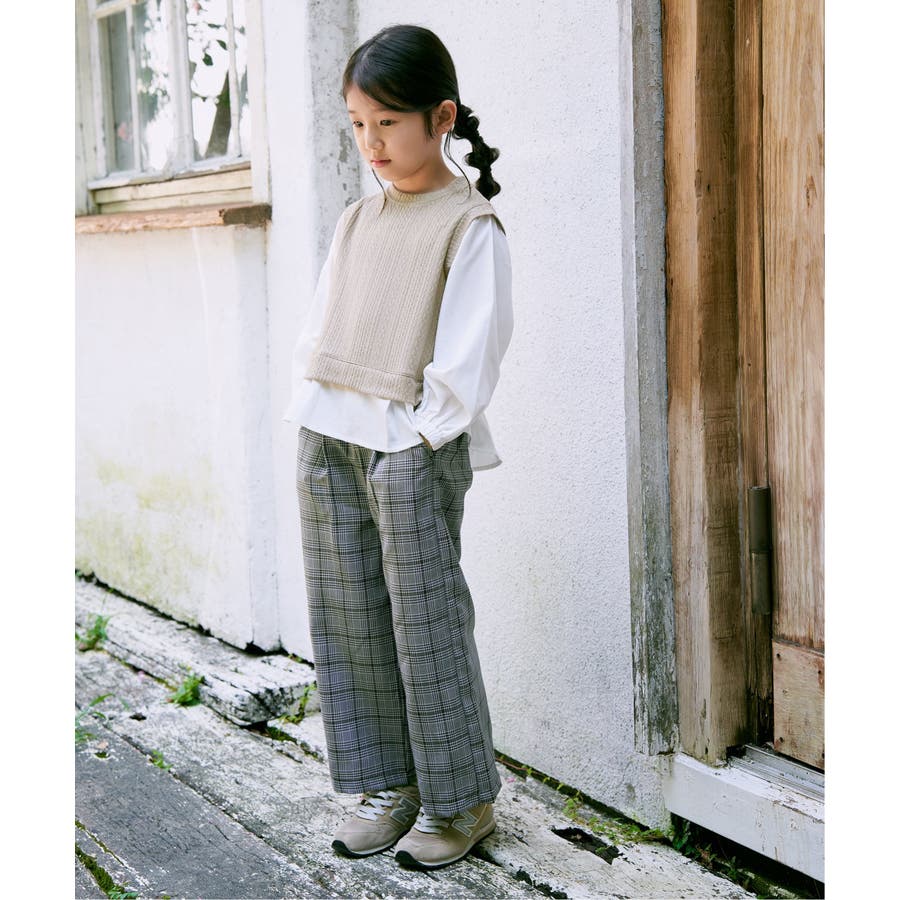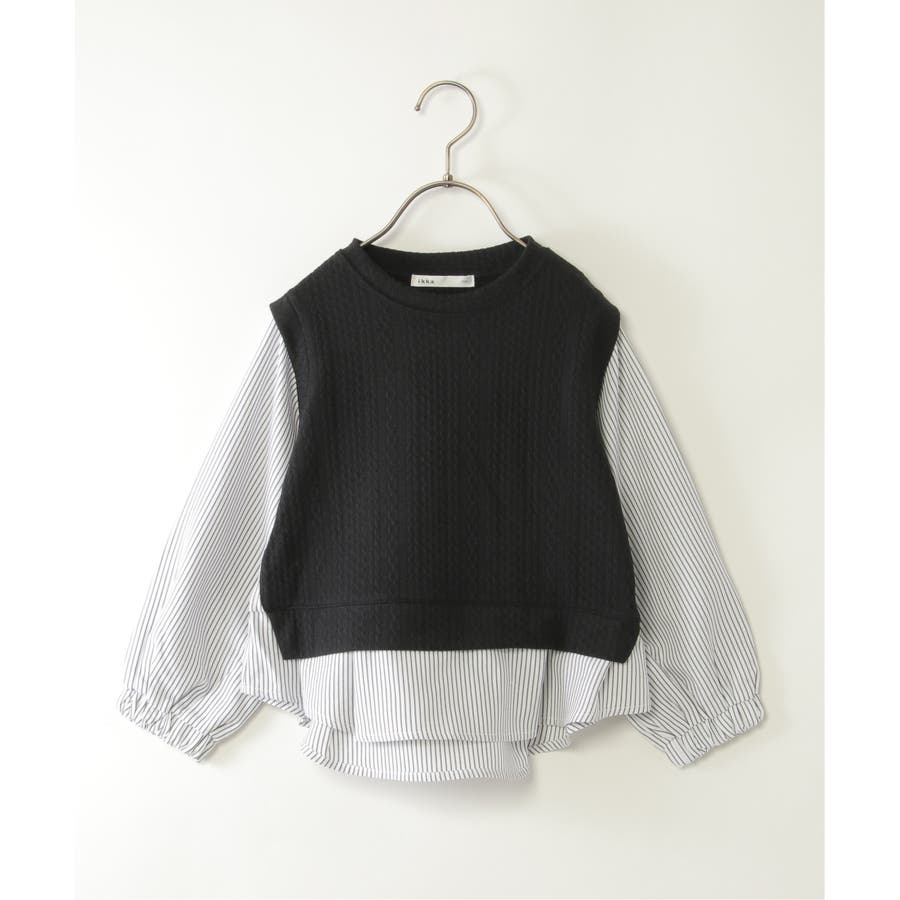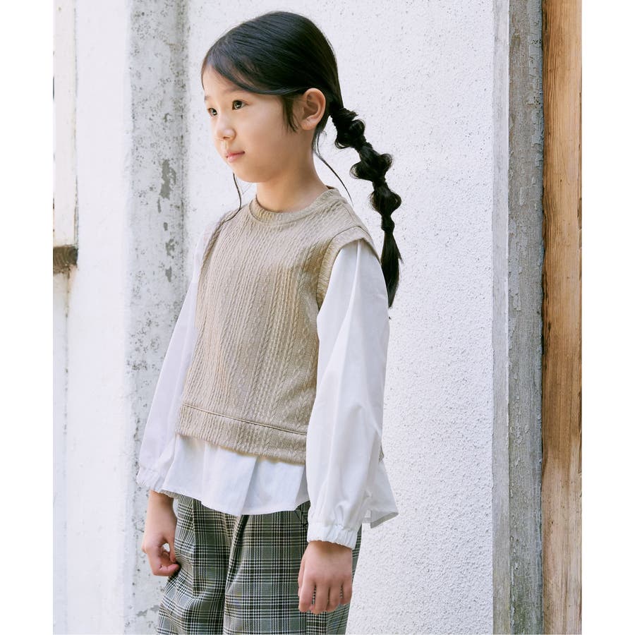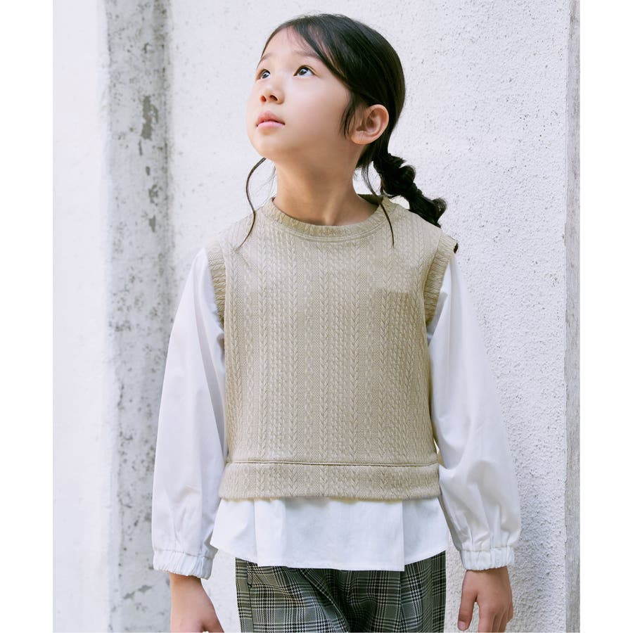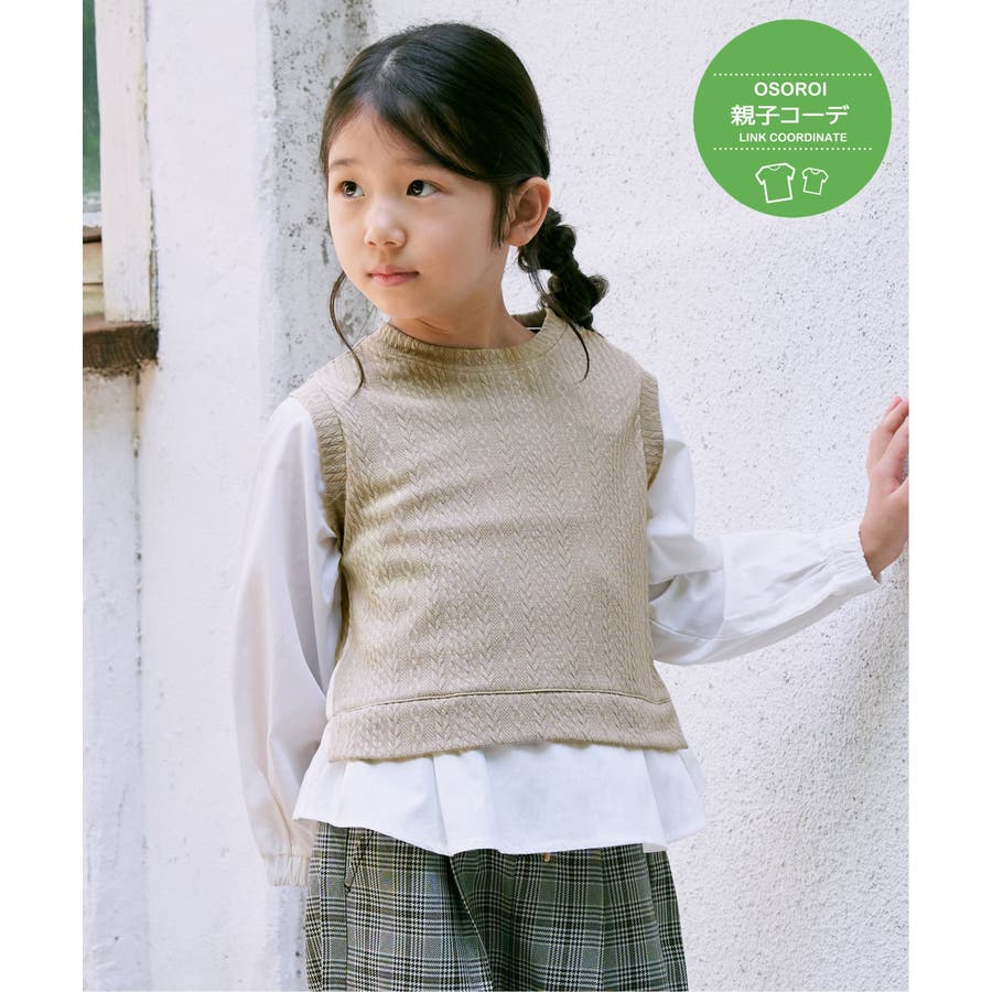 【親子コーデ】ケーブル柄レイヤードプルオーバー(120~160cm)