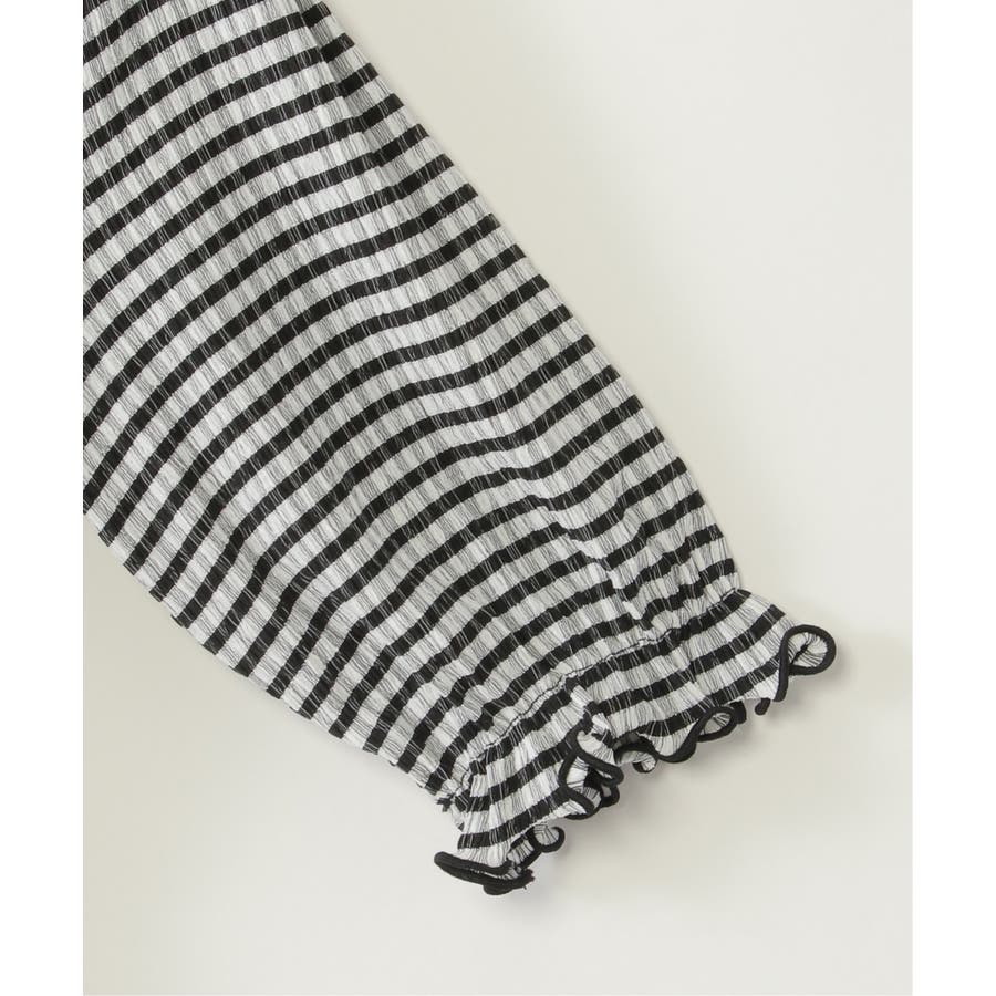 クラシカルなチェック柄に、チビ襟や袖口のフリルがアクセントとなり、かわいらしさをプラス!