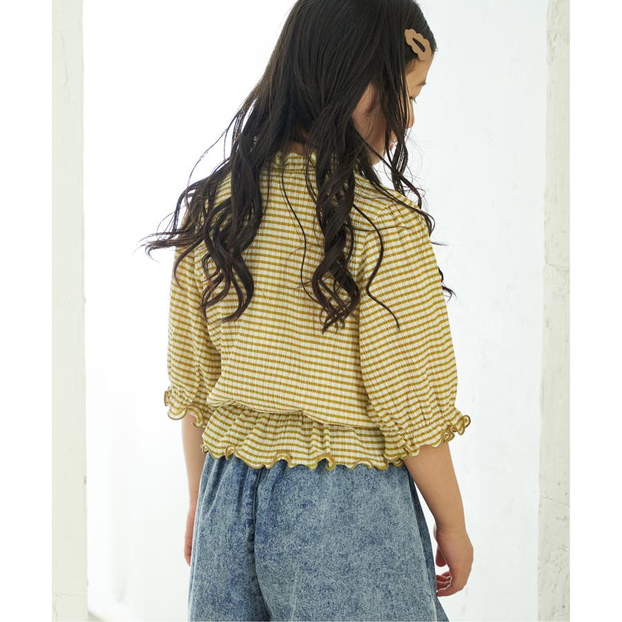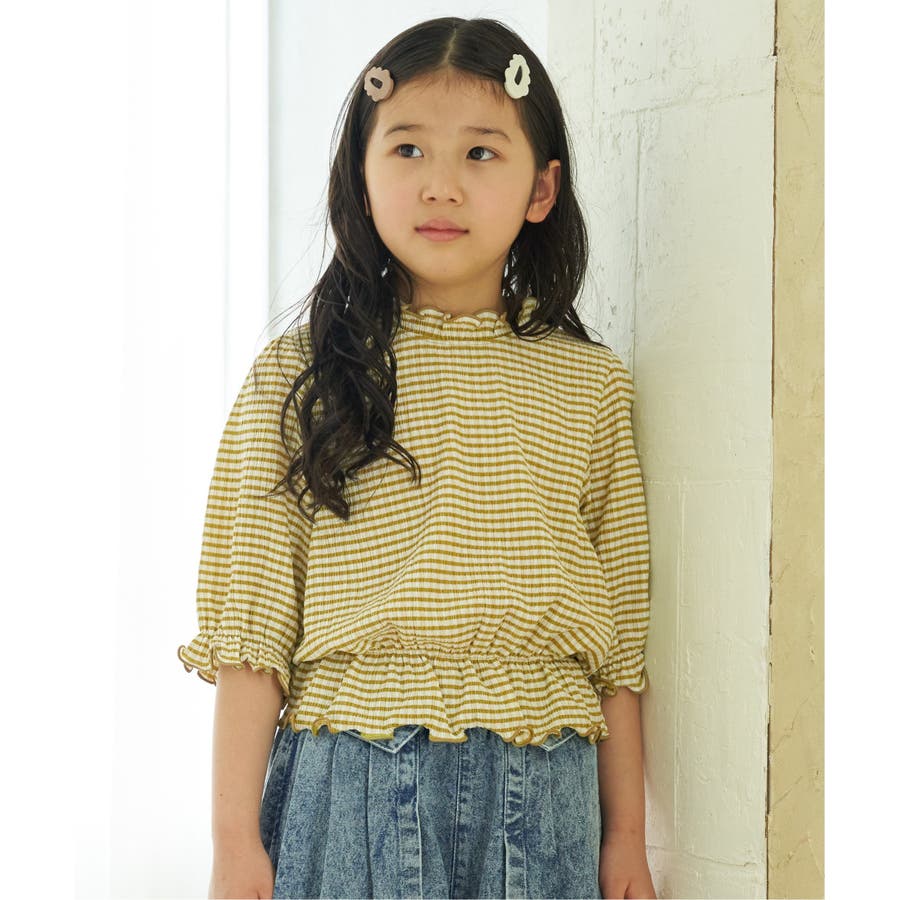 ブラウスライクチェック7分袖プルオーバー(120~160cm)