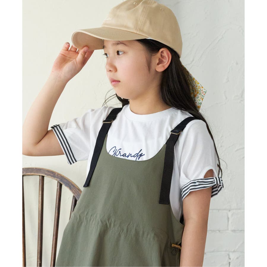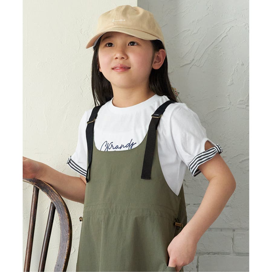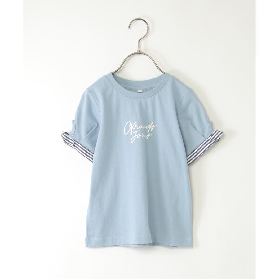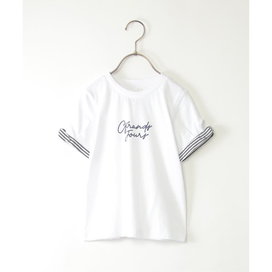 袖ストライプリボンロゴTシャツ(120~160cm)
