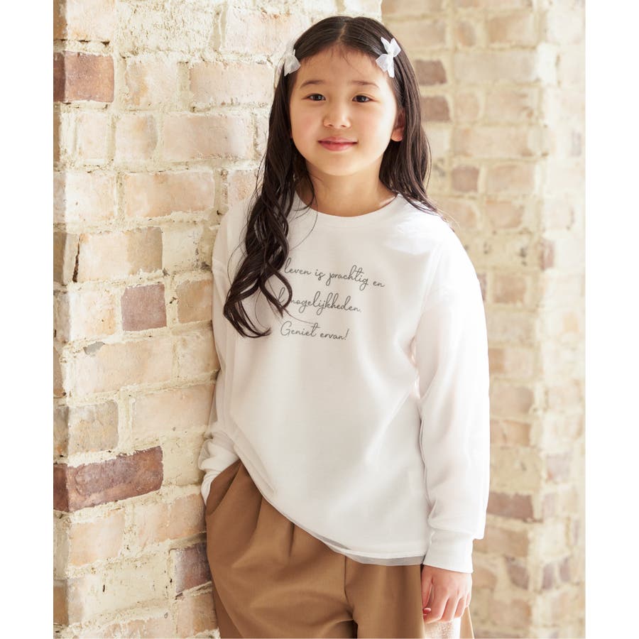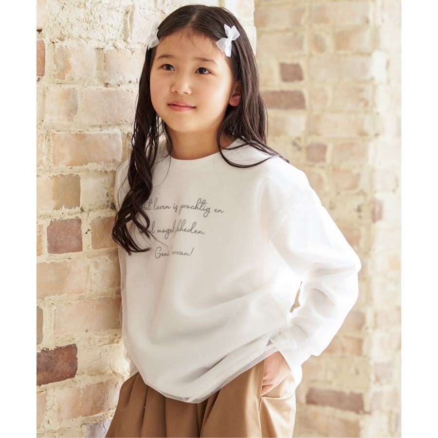 【メディア紹介商品】チュール重ねロゴプリントプルオーバー(120~160cm)