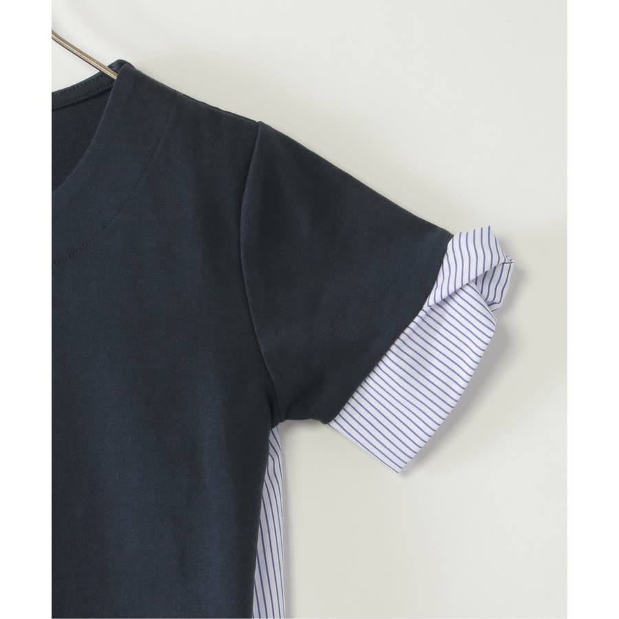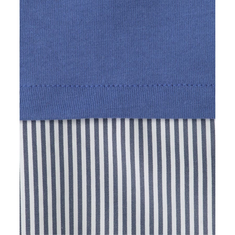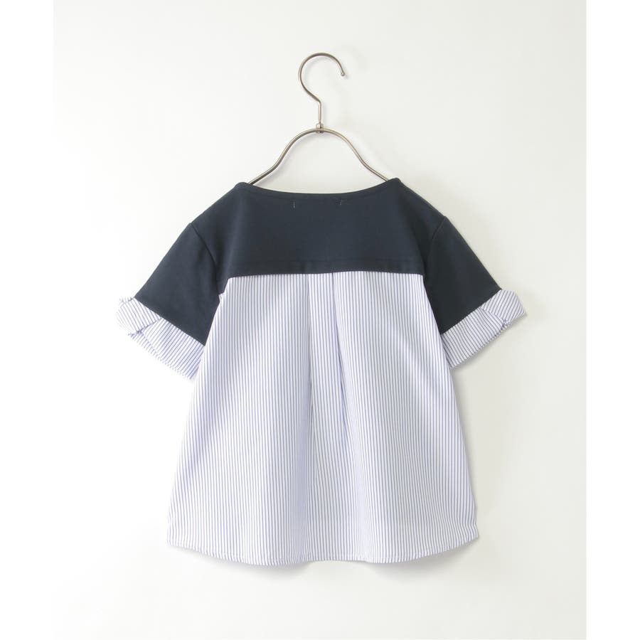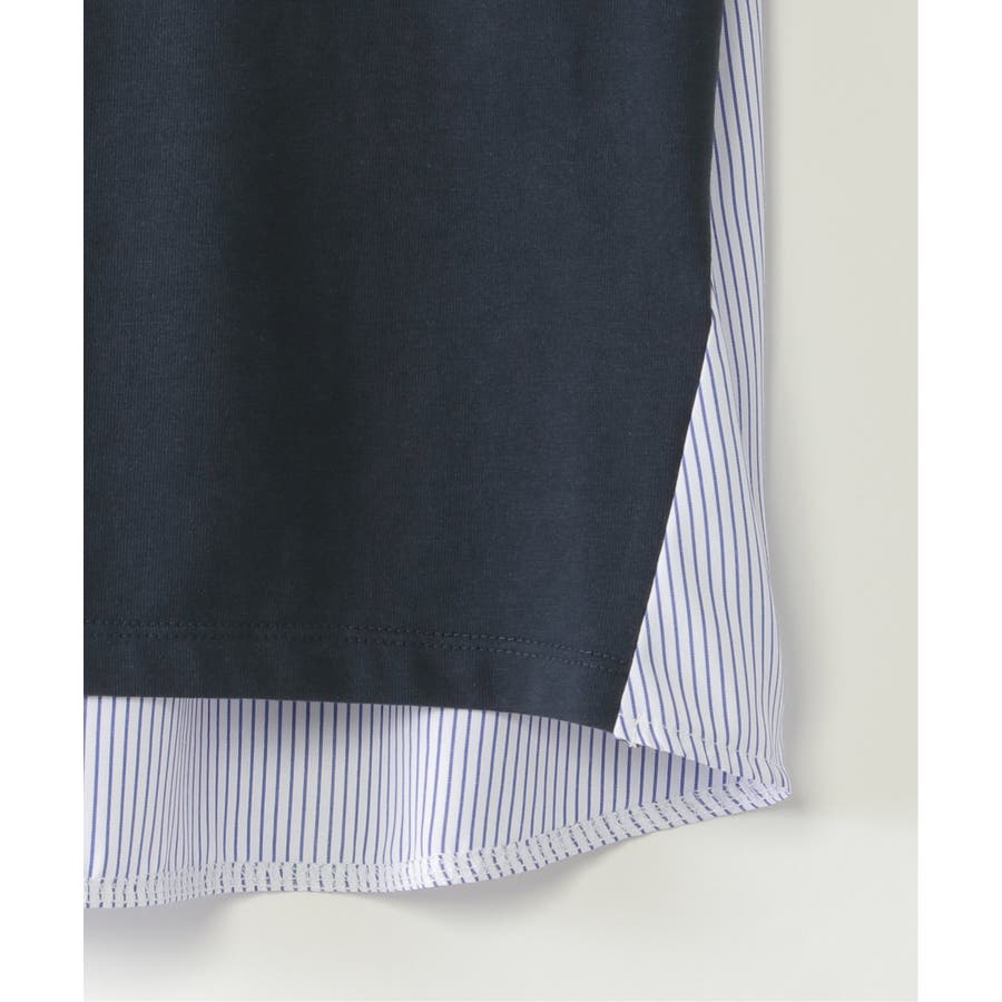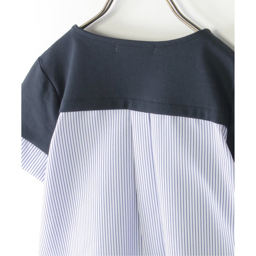 ストライプ布帛と、カットソーの切り替えコンビ。
