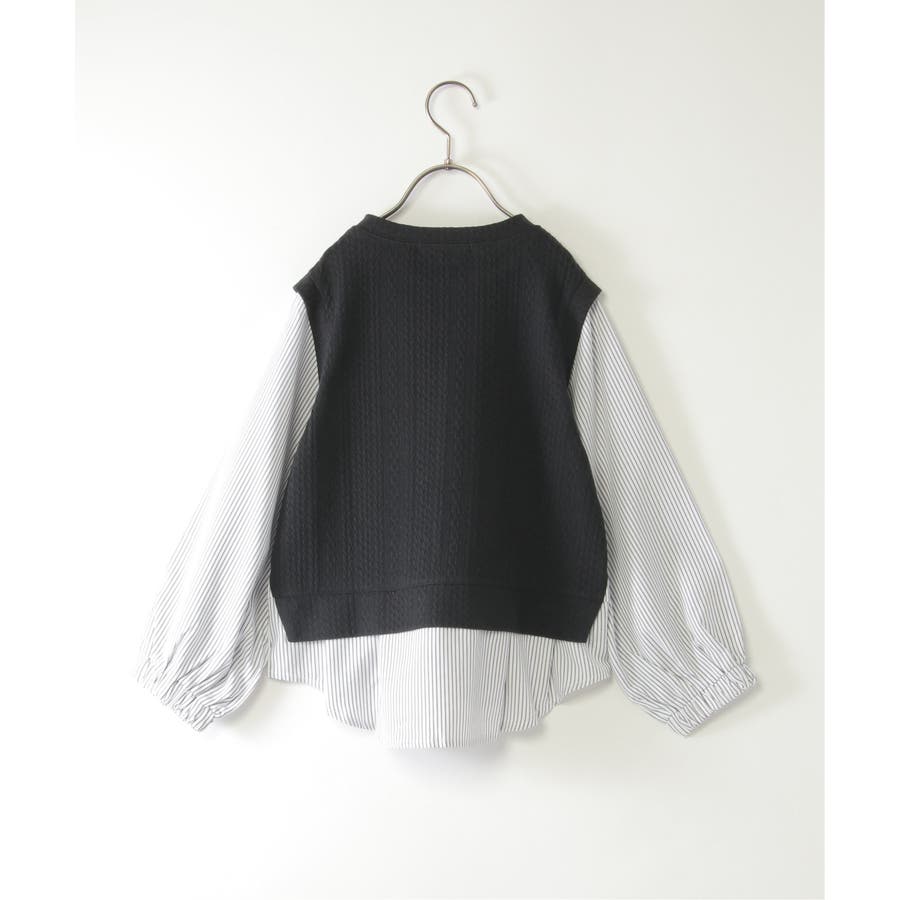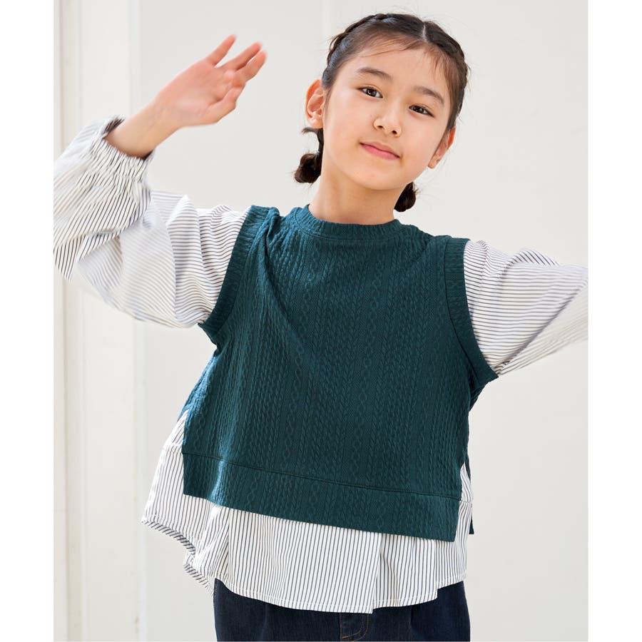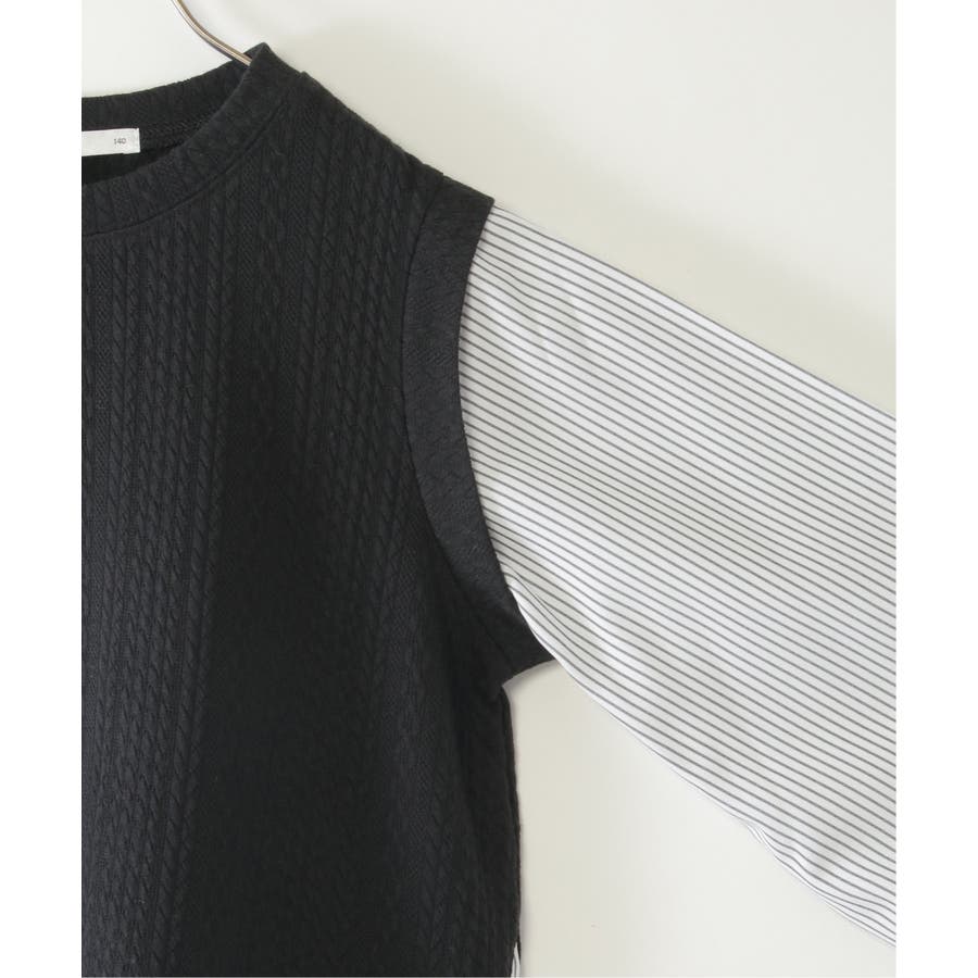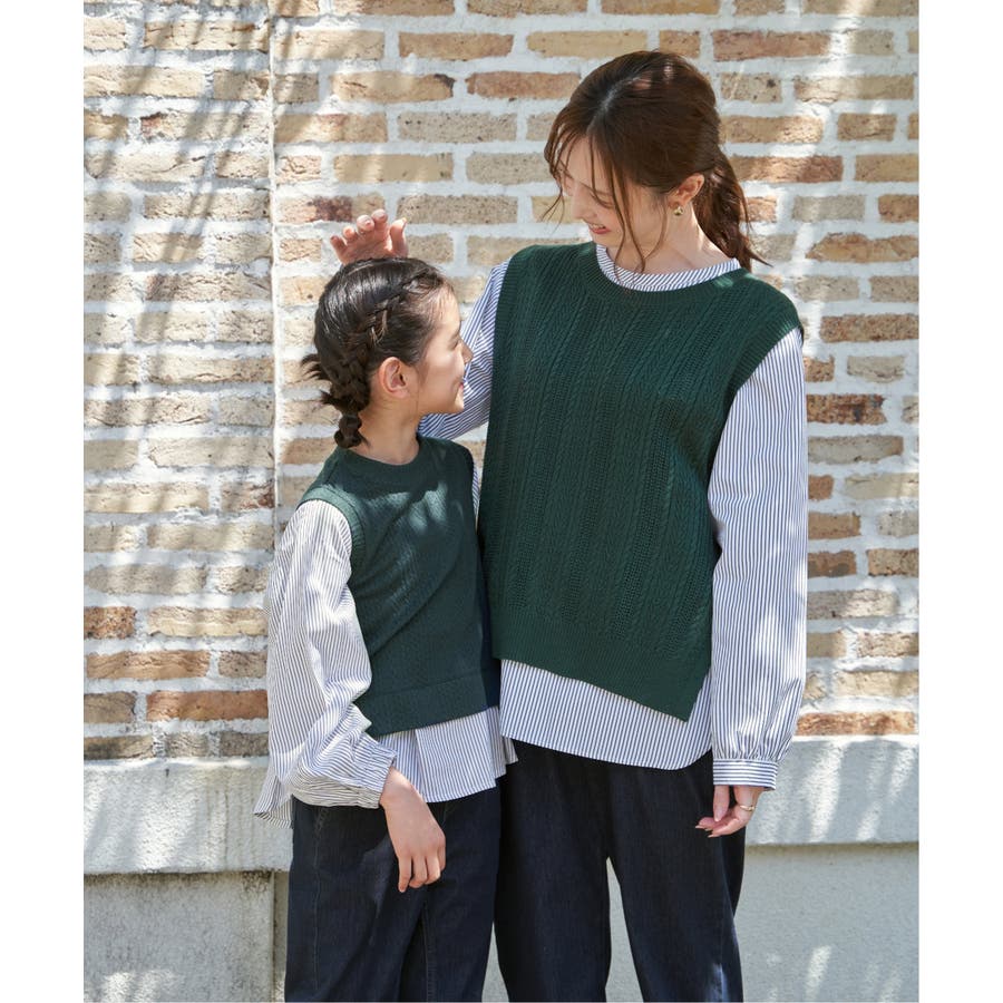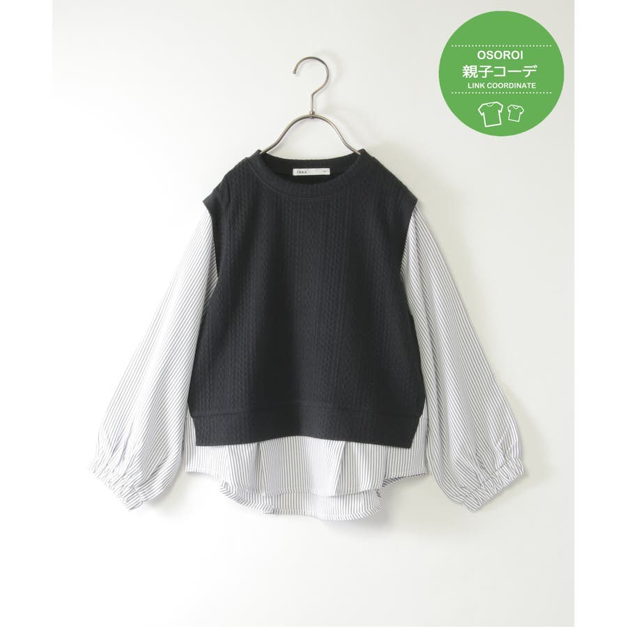 【親子コーデ】ケーブル柄レイヤードプルオーバー(120~160cm)