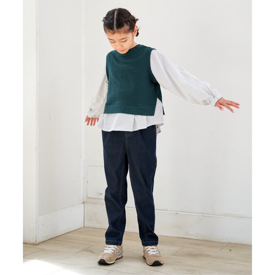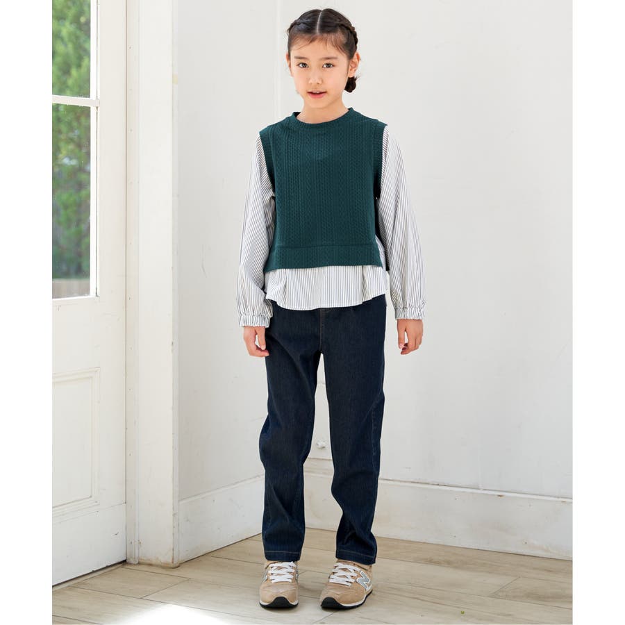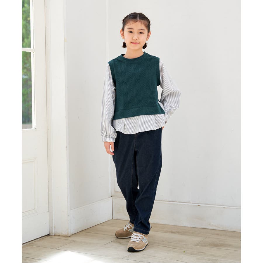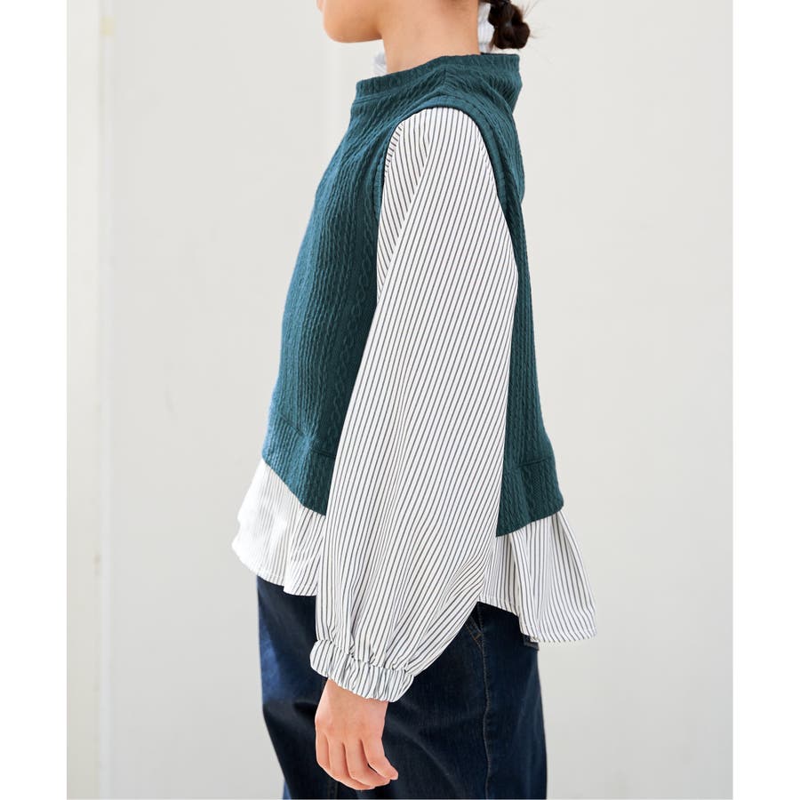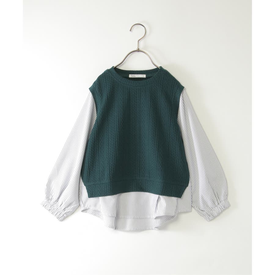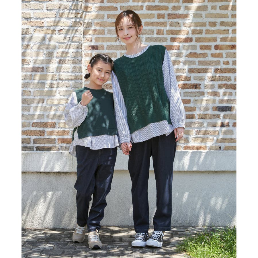 【親子コーデ】ケーブル柄レイヤードプルオーバー(120~160cm)