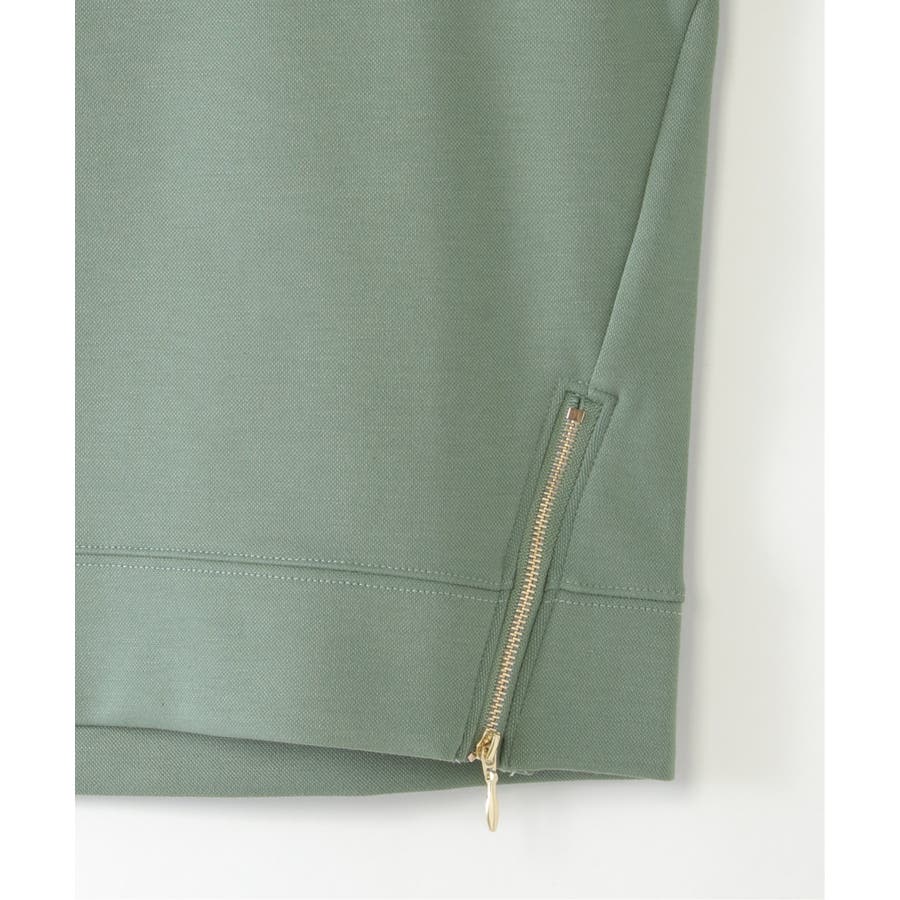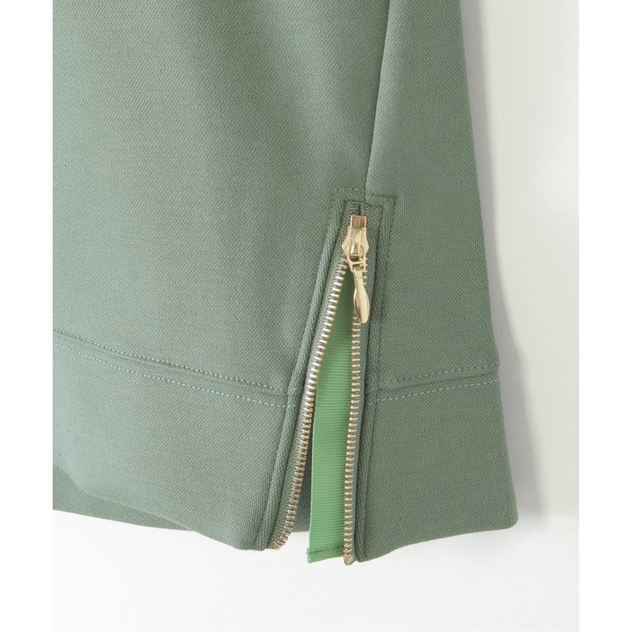 裾のサイドジップと、取り外し可能なスピンドルがアクセントになり、シンプルながらも着こなしに変化をつけられるデザインです。