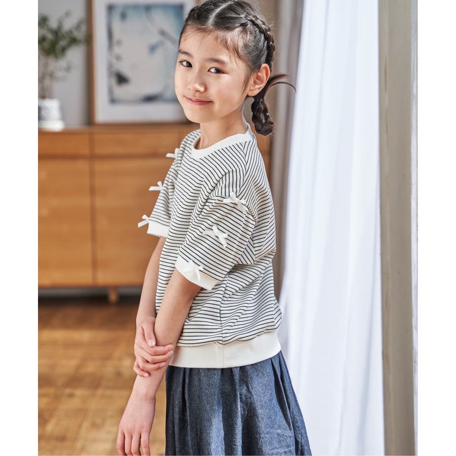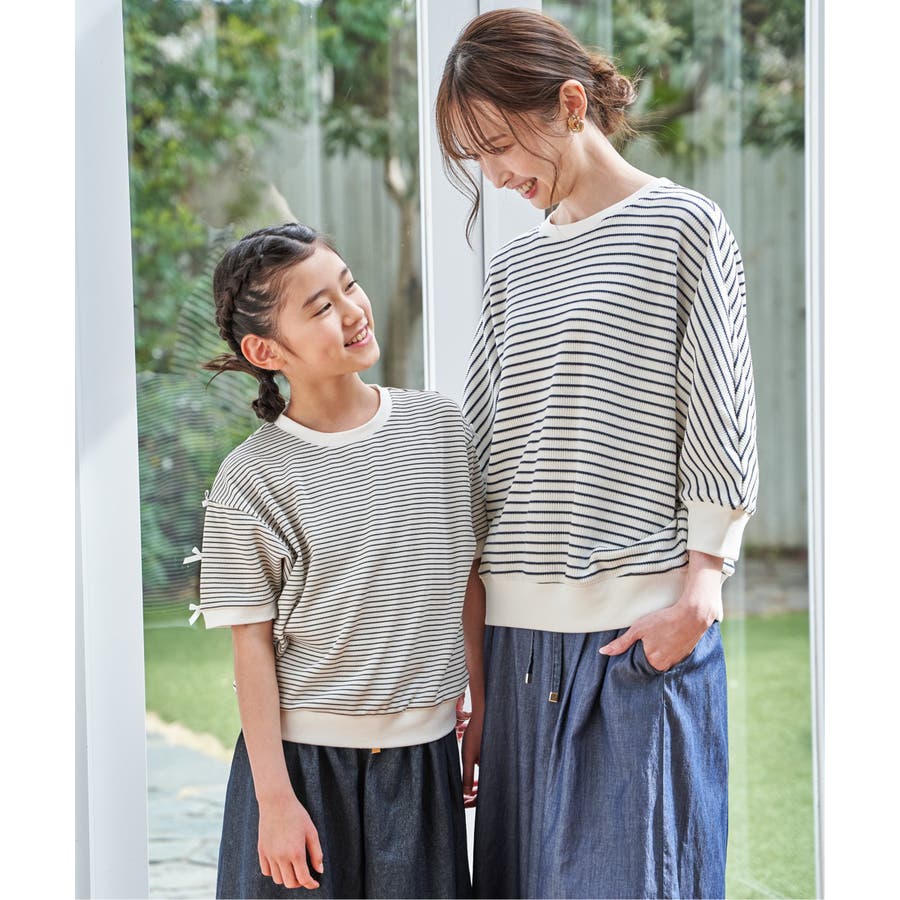【親子コーデ】 フライス袖リボンドルマンプルオーバー (120cm~160cm)