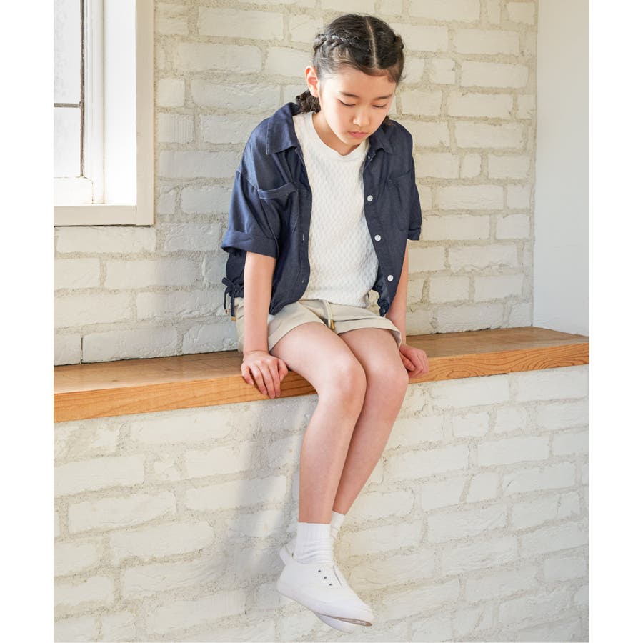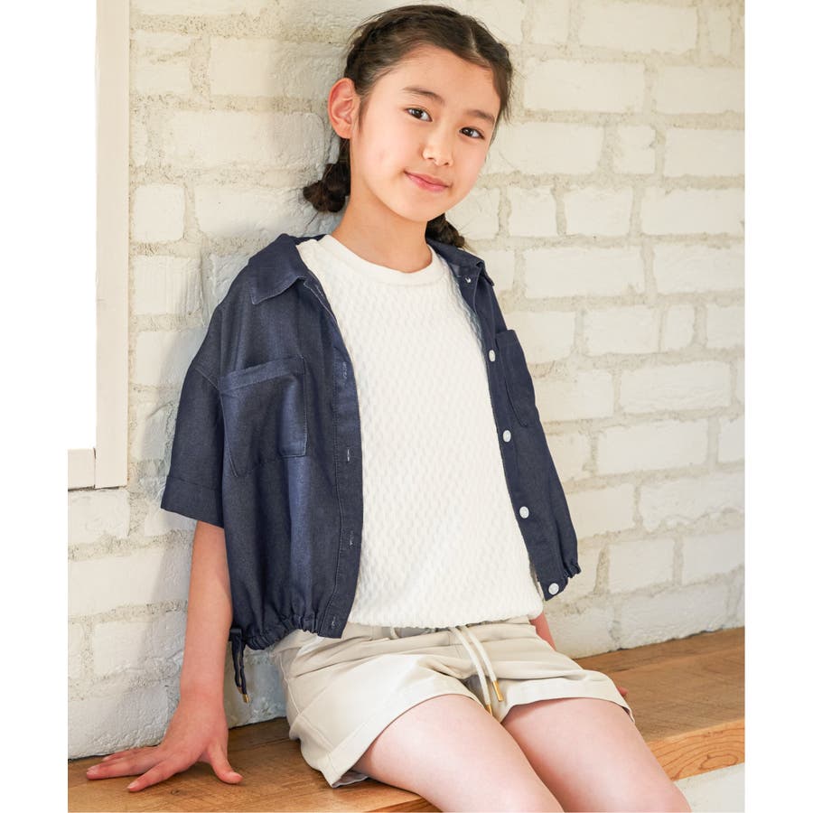 【親子コーデ】 裾シャーリングシャツ (110cm~160cm)