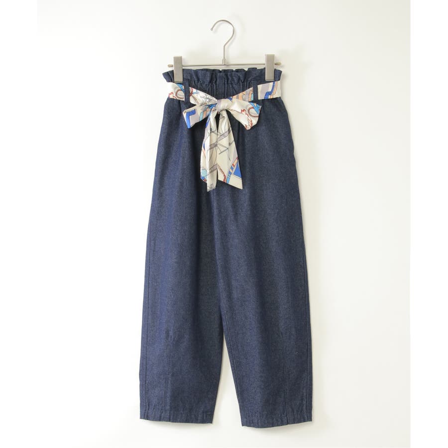 スカーフベルト付きバレルデニムパンツ