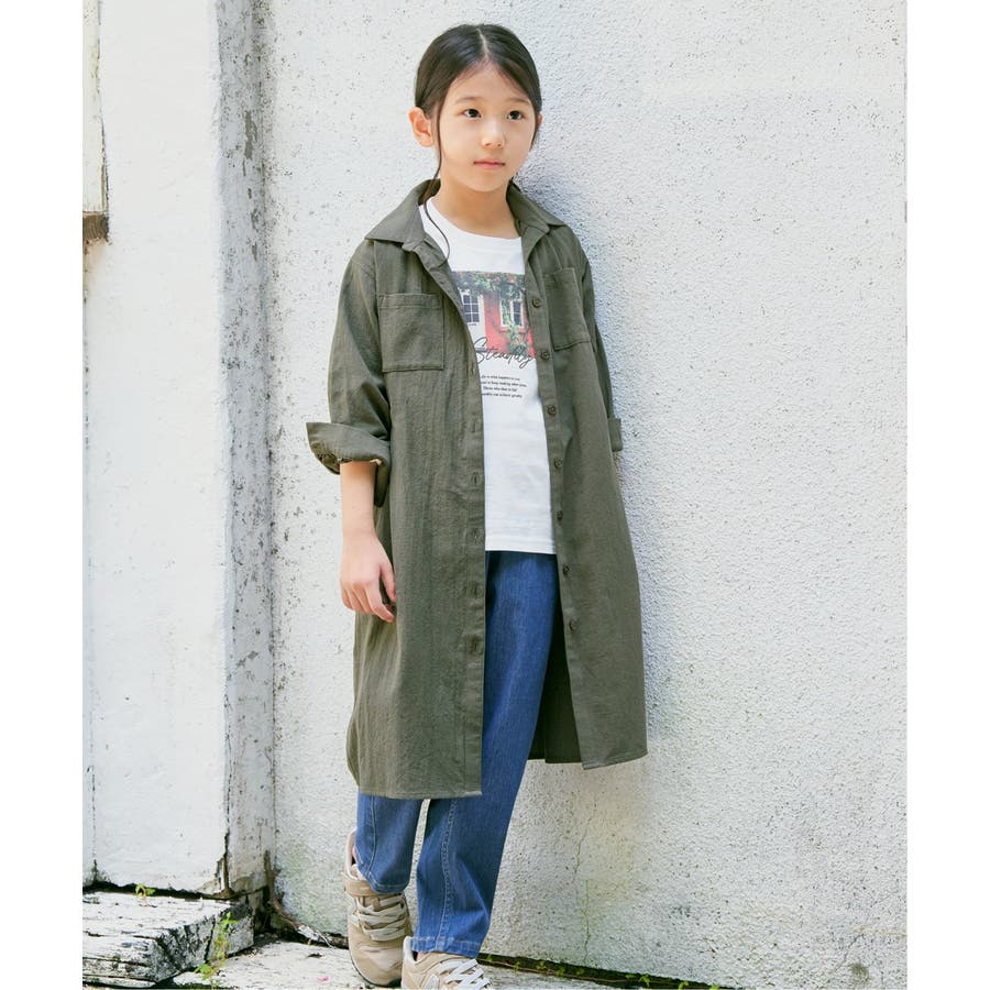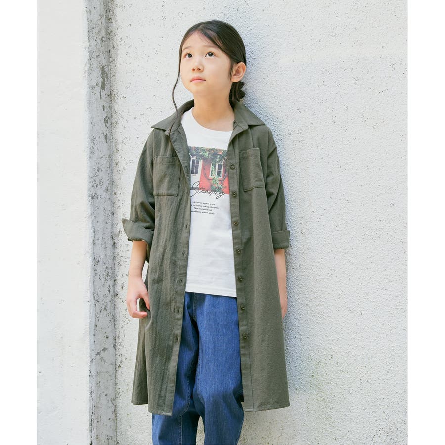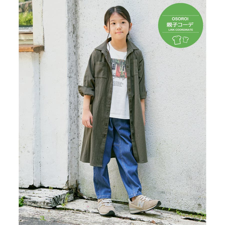 【親子コーデ】8分袖スキッパーシャツワンピース(120~160cm)