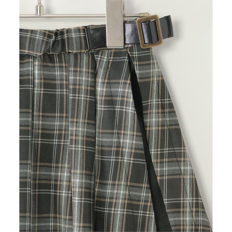 異素材の切り替え配色&合皮ベルトのデザイン性が高いスカート。