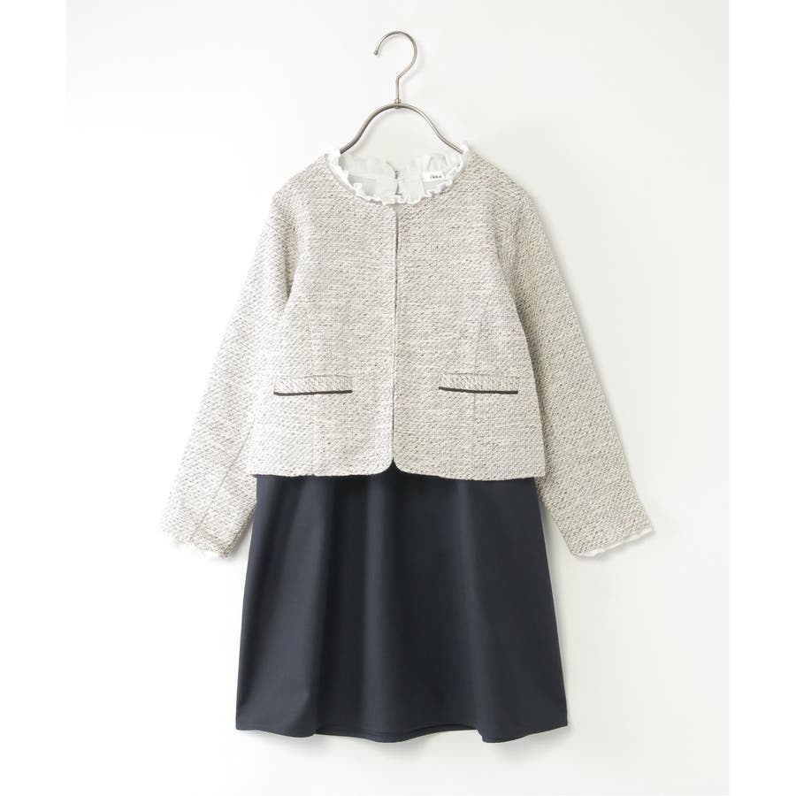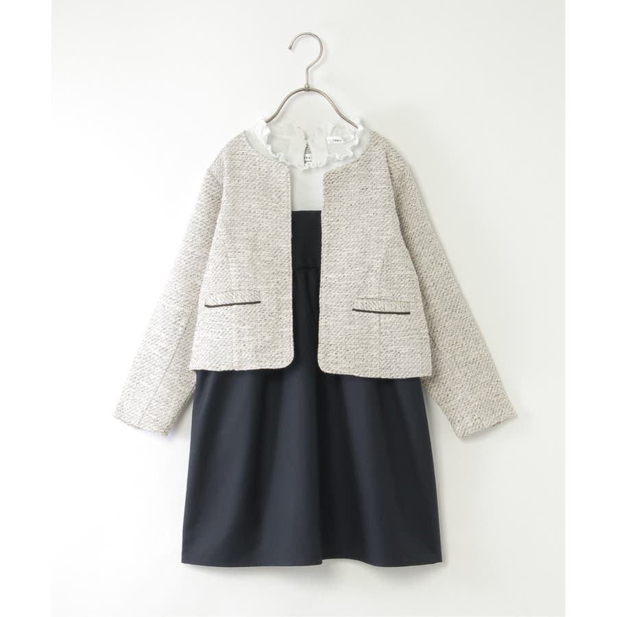 【親子コーデ】ツイード風ジャケットワンピースセット(120~150cm)