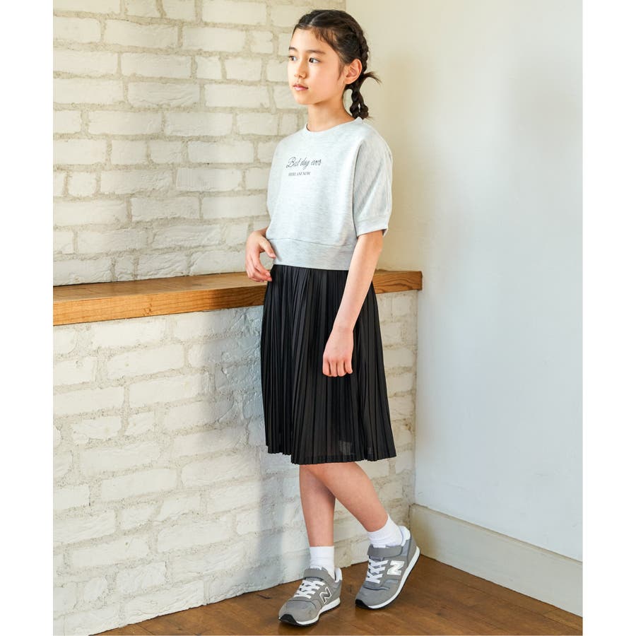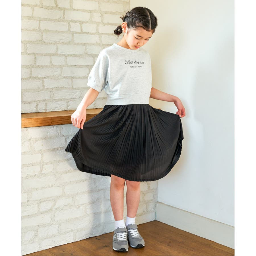 【親子コーデ】ラメ混ドルマンプリーツスカートワンピース(120~160cm)