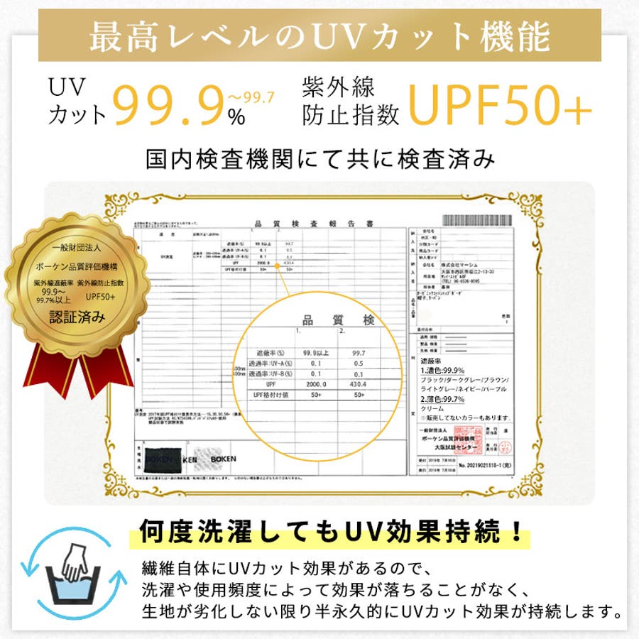 UVカット 最大遮蔽率 99.9%・紫外線防止指数 UPF50+(検査済)
