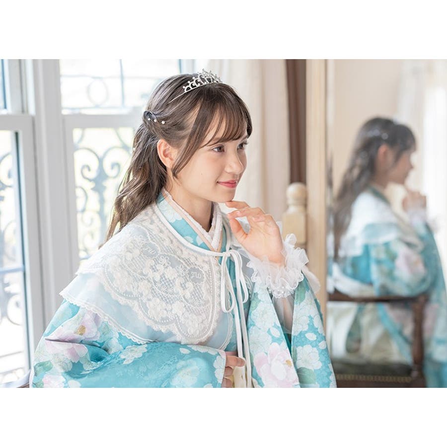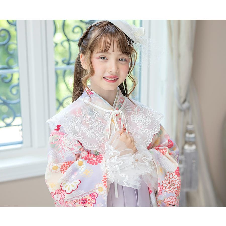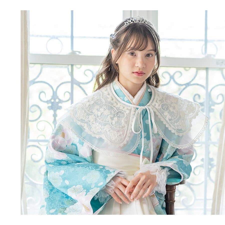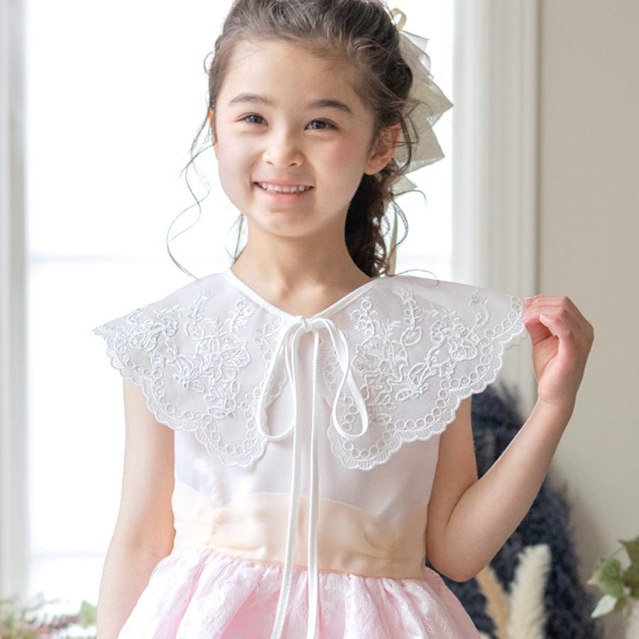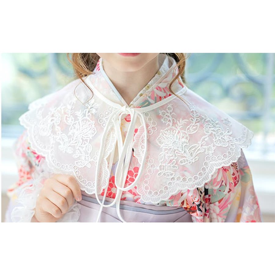 細部には、お花のモチーフや スカラップ模様の刺繍が施されておりお顔周りをぱっと華やかにみせてくれます。