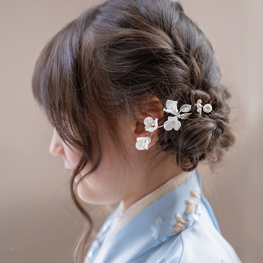 【素材】合金、セラミックフラワー、フェイクパール、クリスタルビーズ