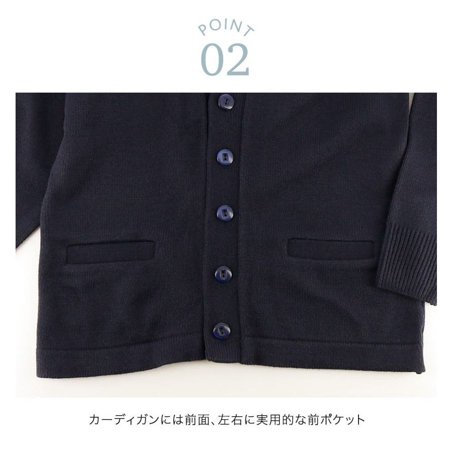 ●カーディガンは前面、左右に実用的な前ポケット