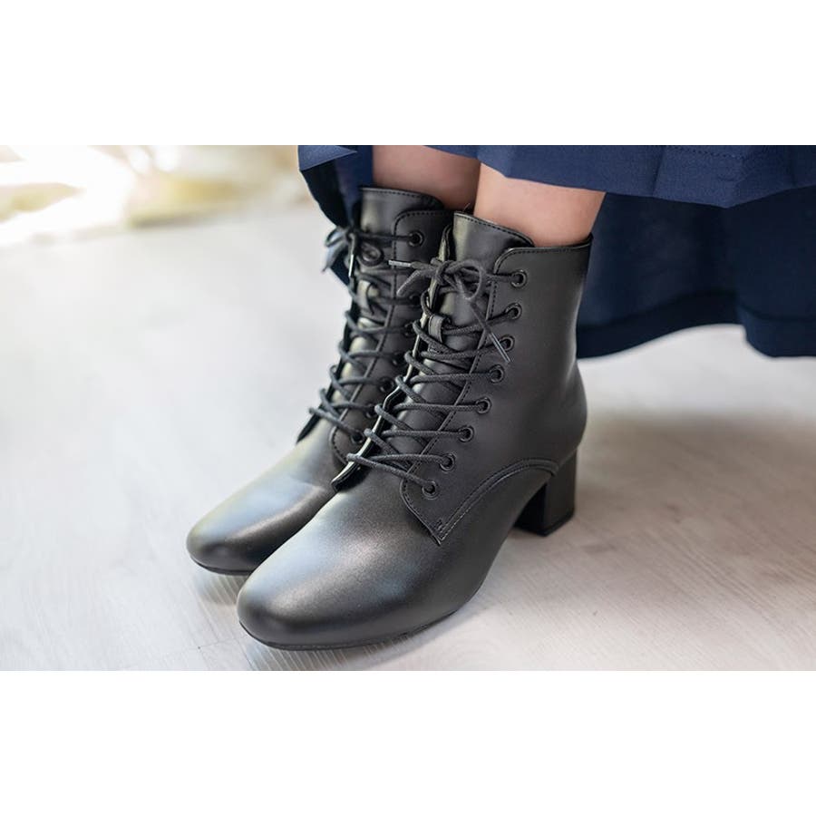 レースアップヒールブーツ 袴ブーツ 編み上げブーツ