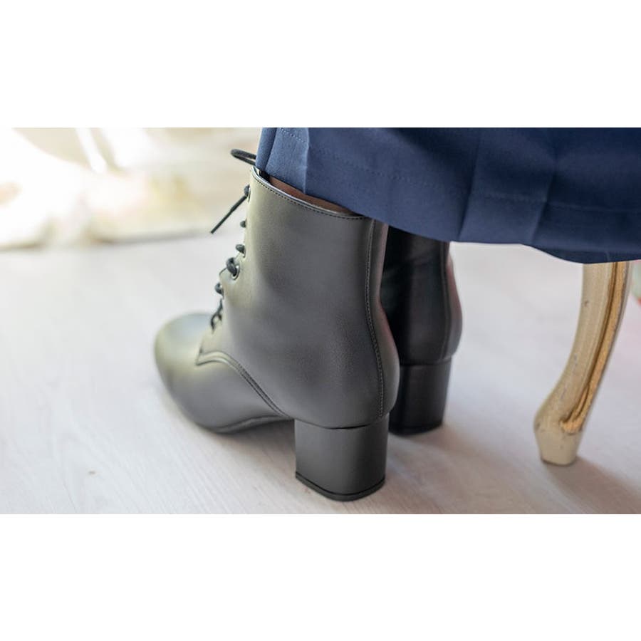 シンプルデザイン、端正なルックスが自慢のレースアップブーツは、パンツスタイルにも、ガーリーコーデにも合わせやすくヒールがついたことでスタイリッシュな印象を後押し!