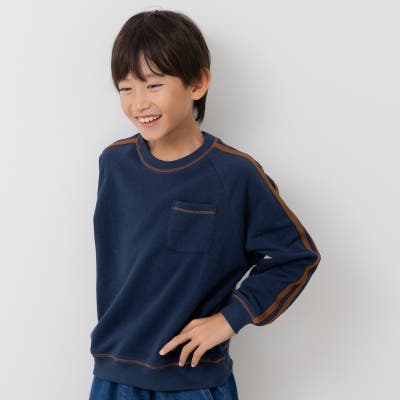 ラグランスリーブにラインが入ったスポーティなデザインに、配色の飾りステッチがおしゃれ。