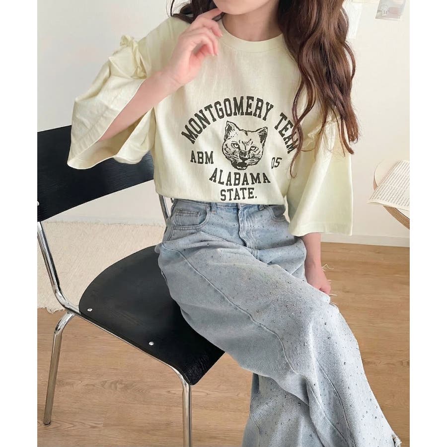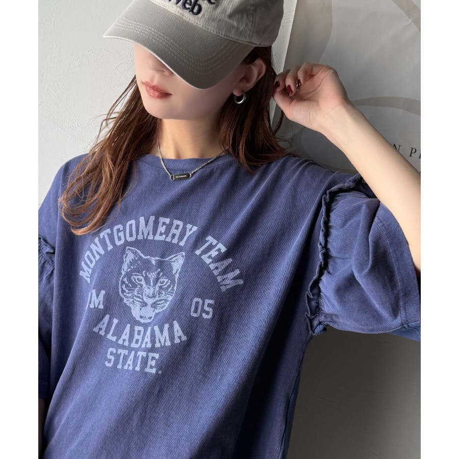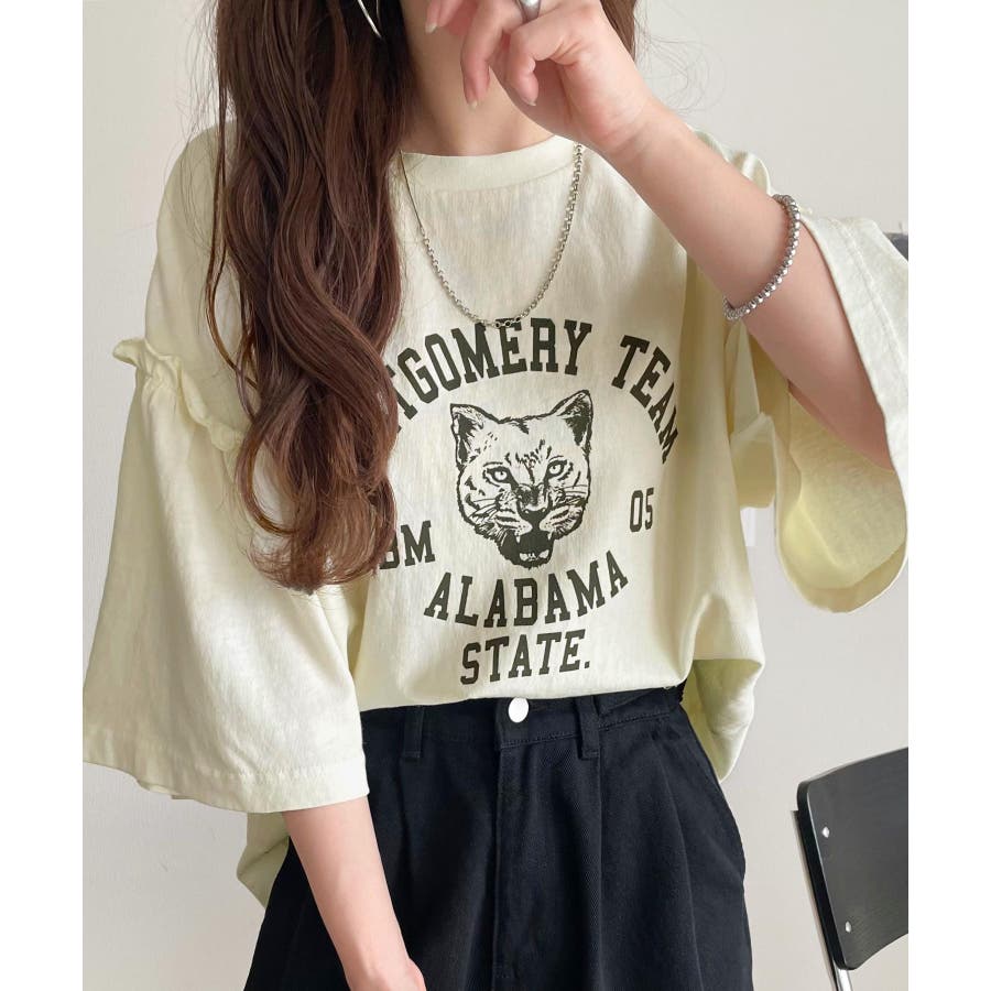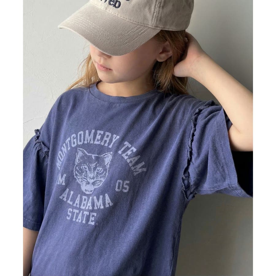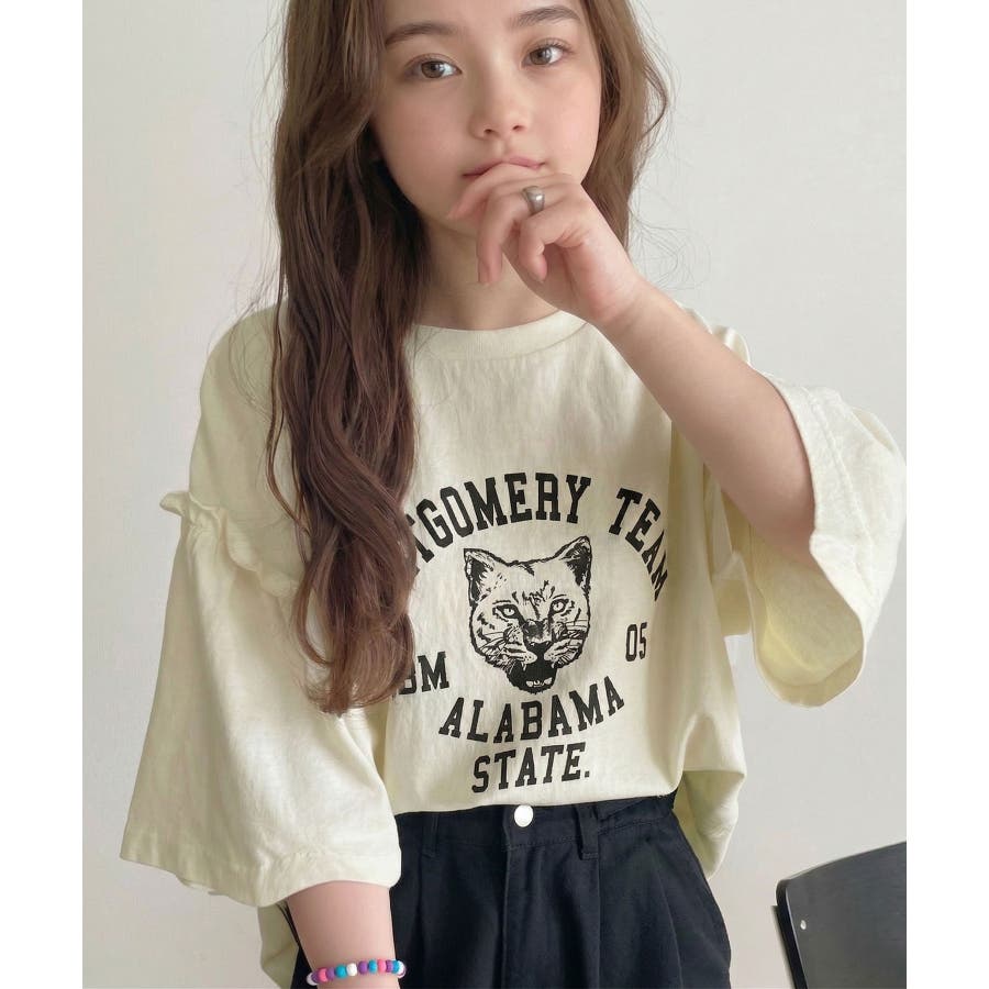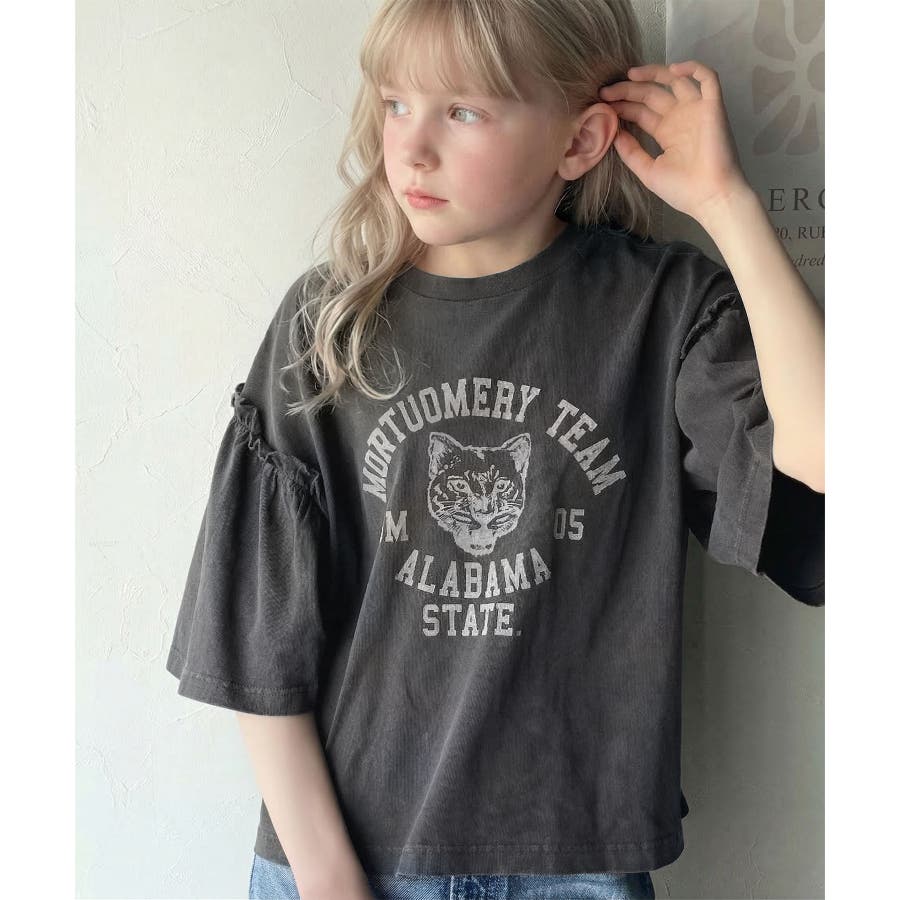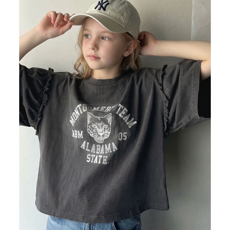 【キッズ】親子リンクコーデ可能◎綿100%カレッジピグメント袖フリルTシャツ