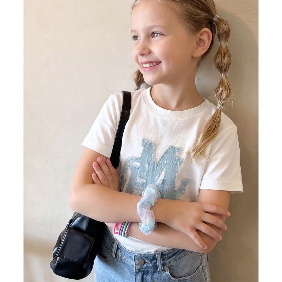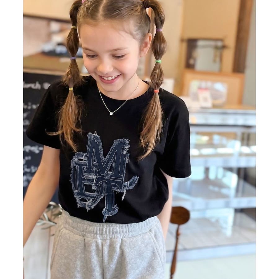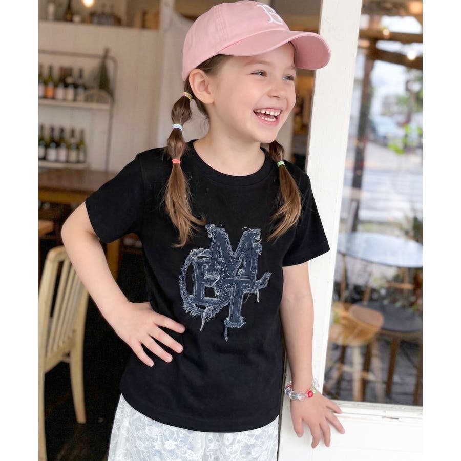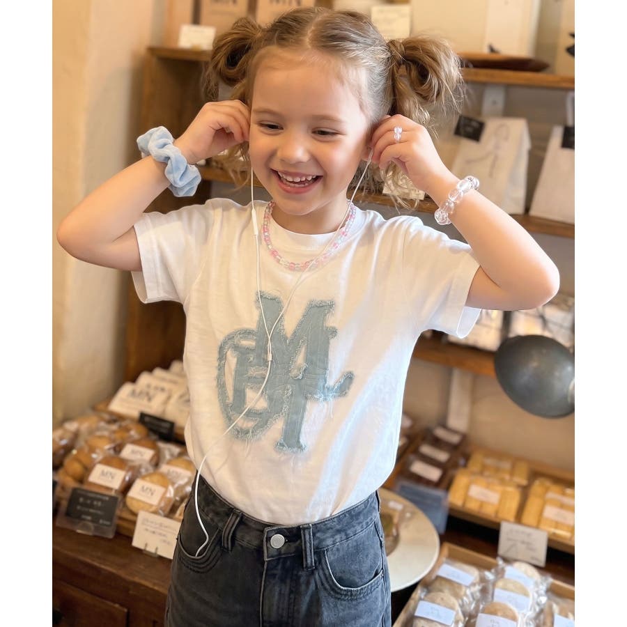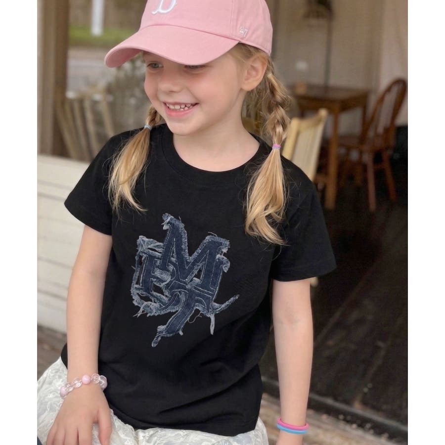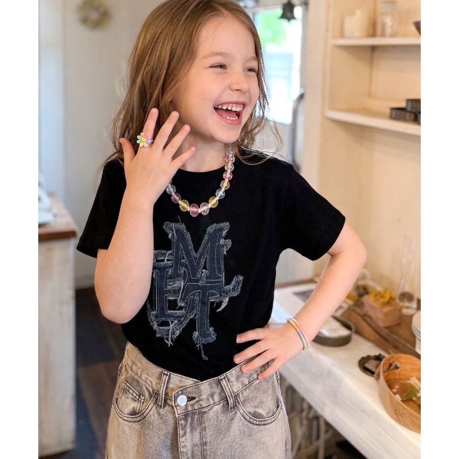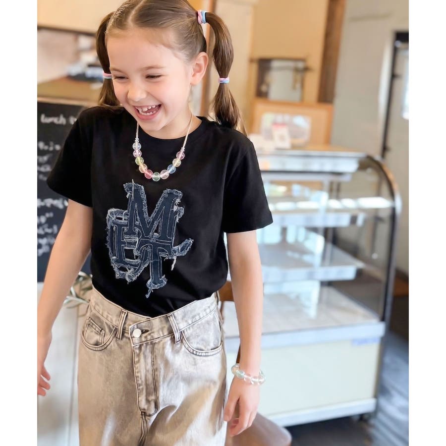 【キッズ】親子リンクコーデ可能♪毎日着せたい 綿100%デニムワッペンフリンジ使…