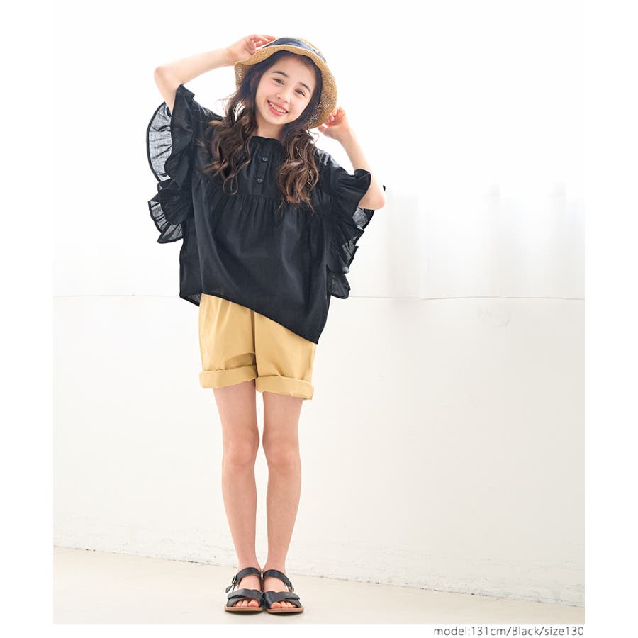 親子お揃いガーゼ袖フリルブラウス キッズ