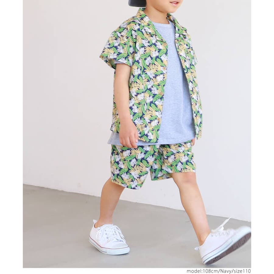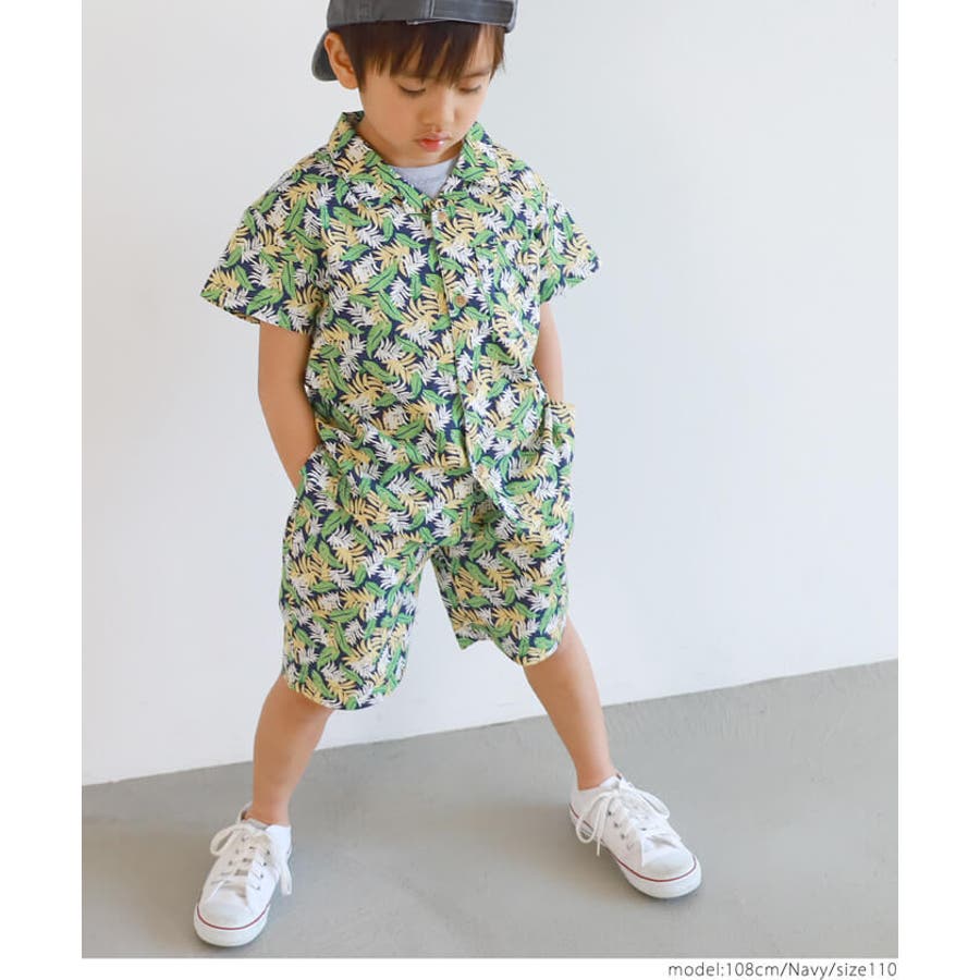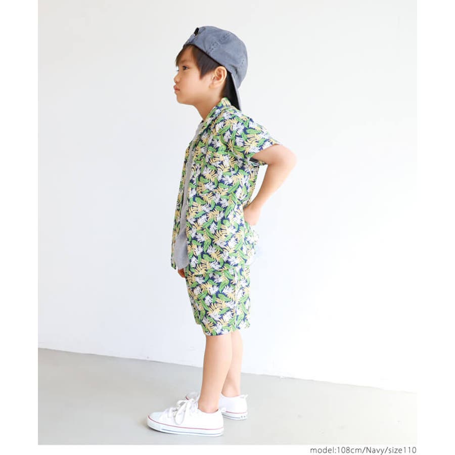 キッズ ミニリーフ&フェザー柄アロハシャツ