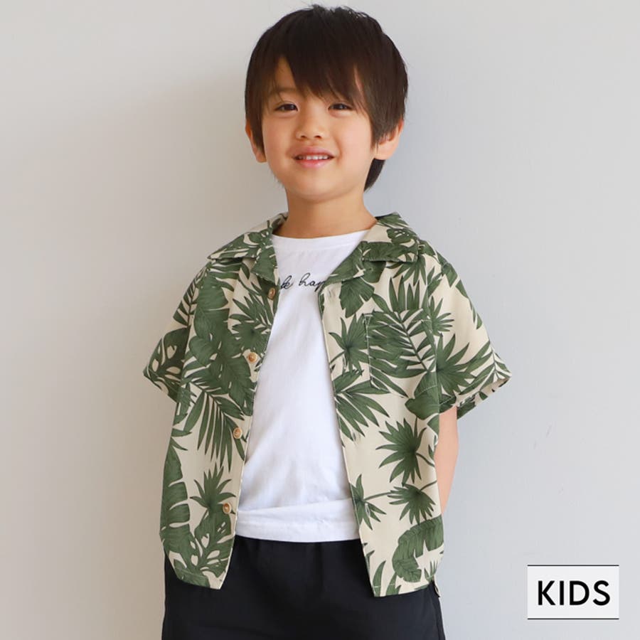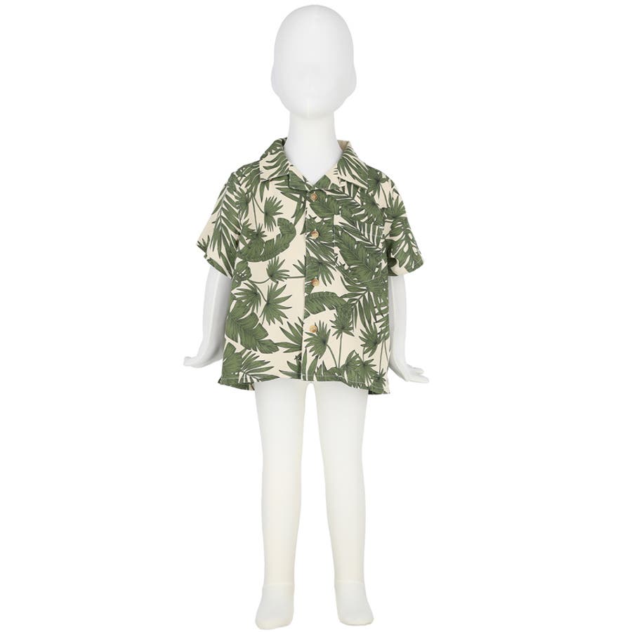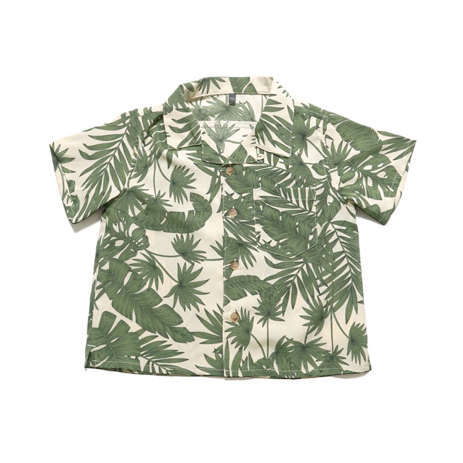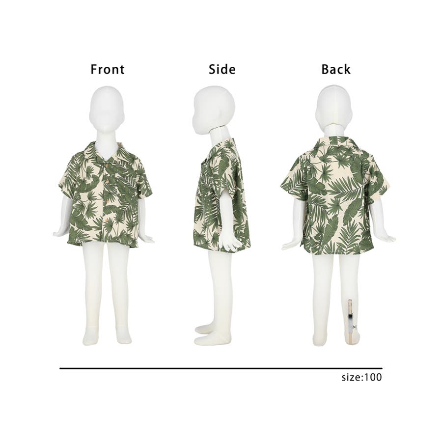 キッズ 親子お揃いリーフ柄リゾートアロハシャツ