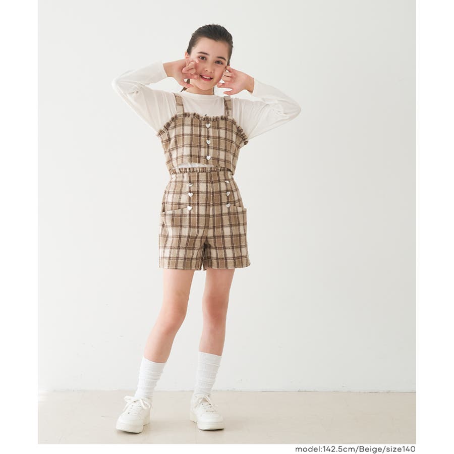 ジュニア ボトムス パンツ ショーパン ショートパンツ ハート ボタン チェック セットアップ可 セットアップ 子供服 120 130 140 150 コカ COCA coca COCA coca