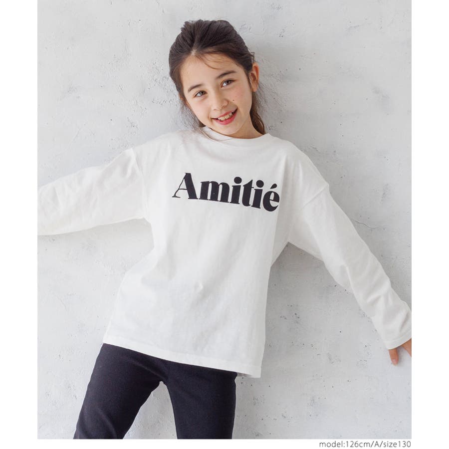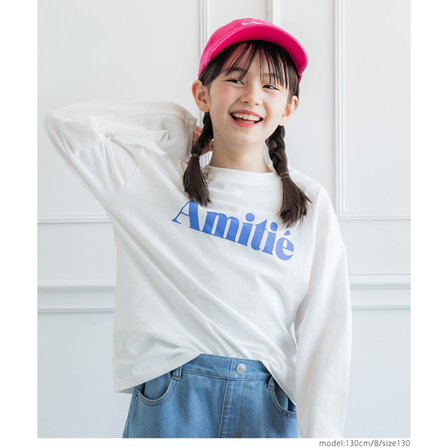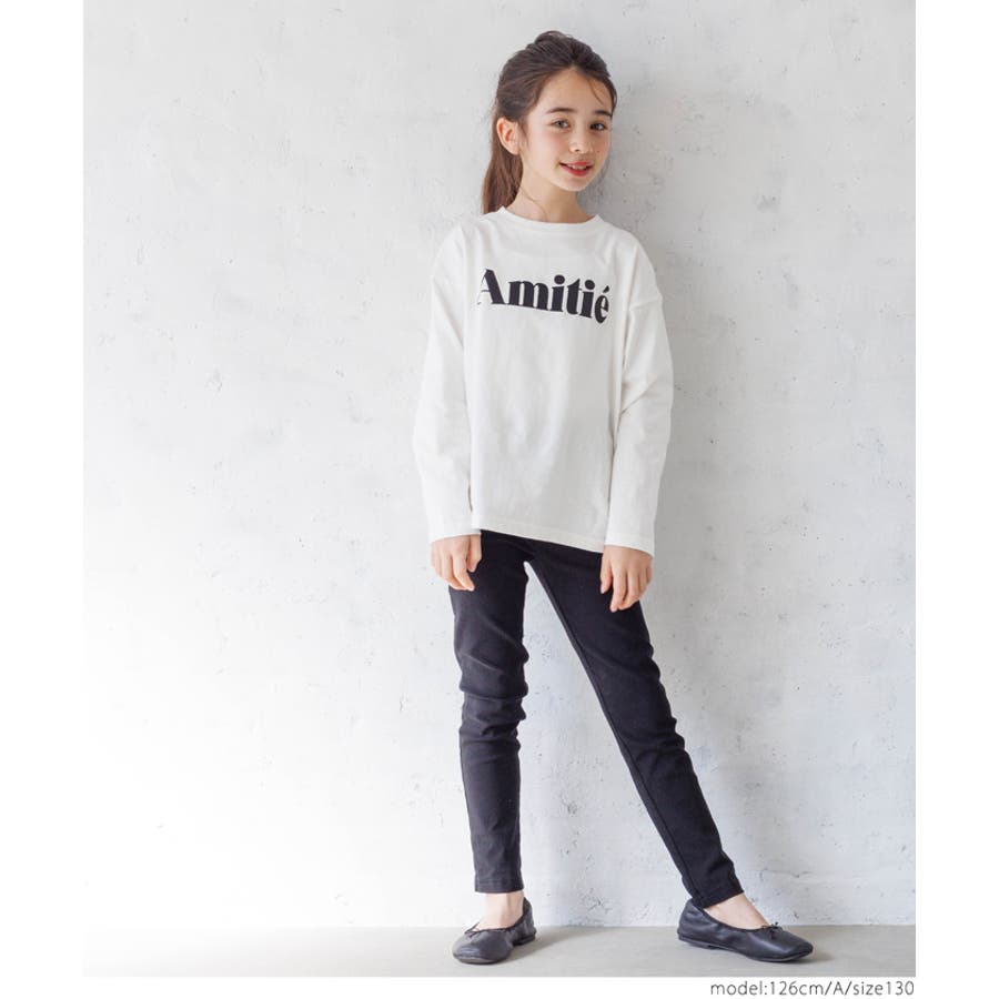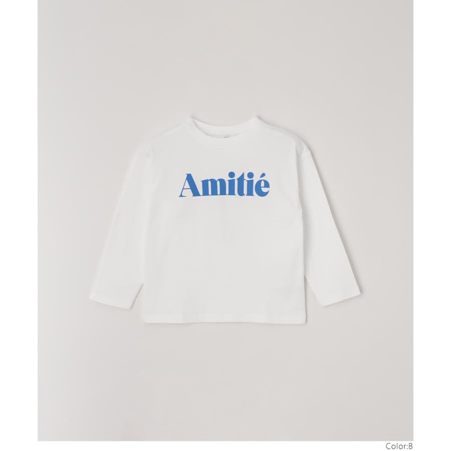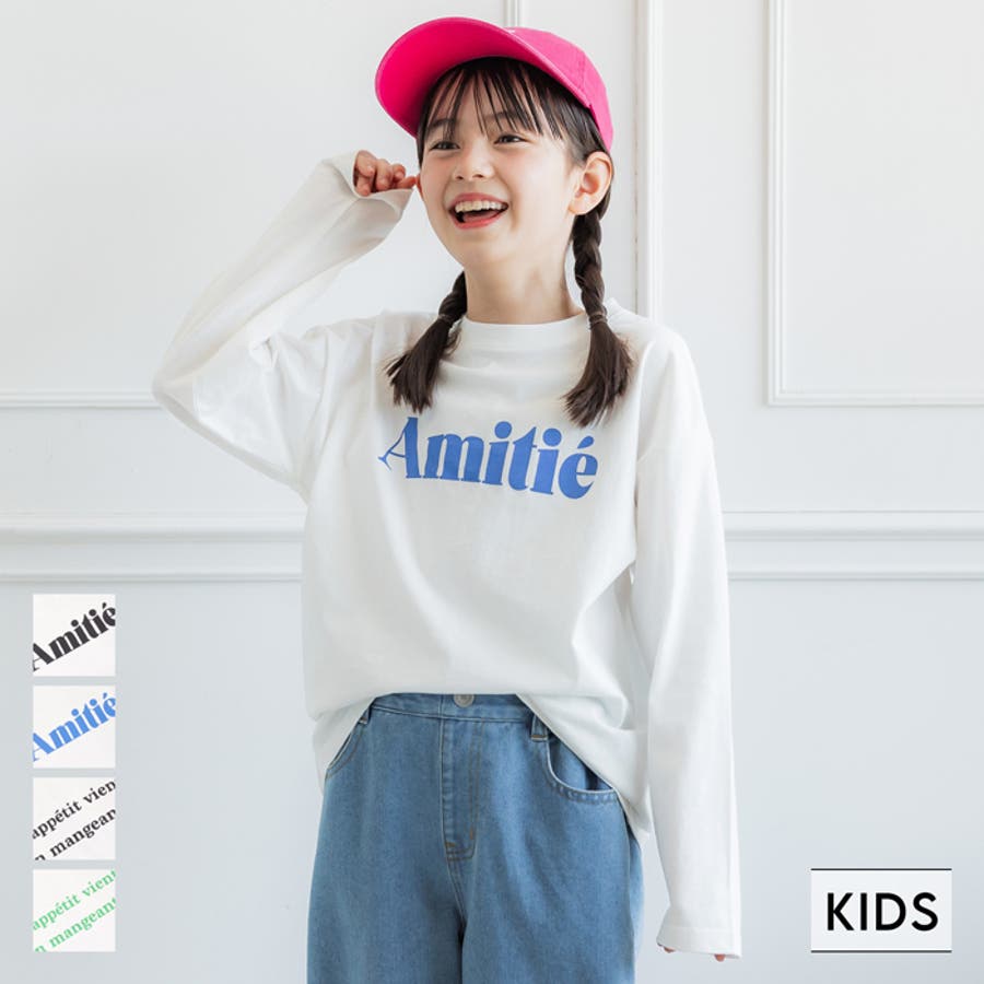 白地のロンTにカラーロゴがデニムとの相性抜群。