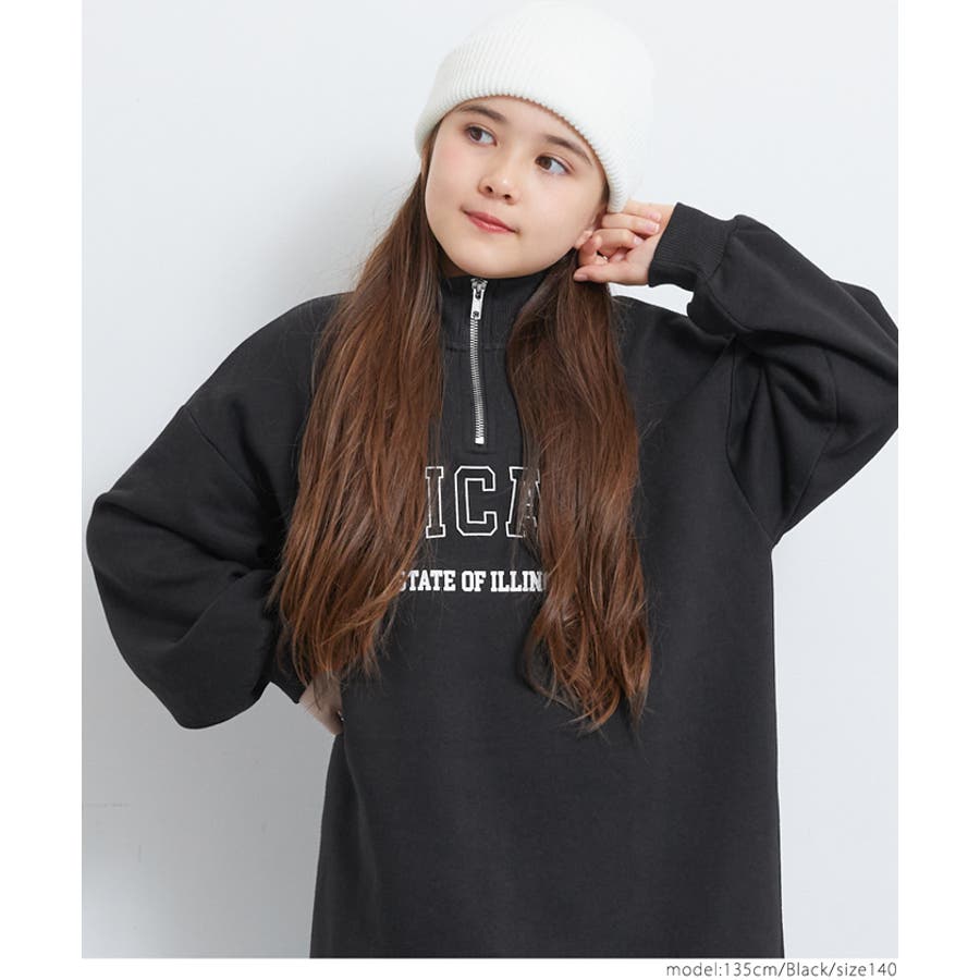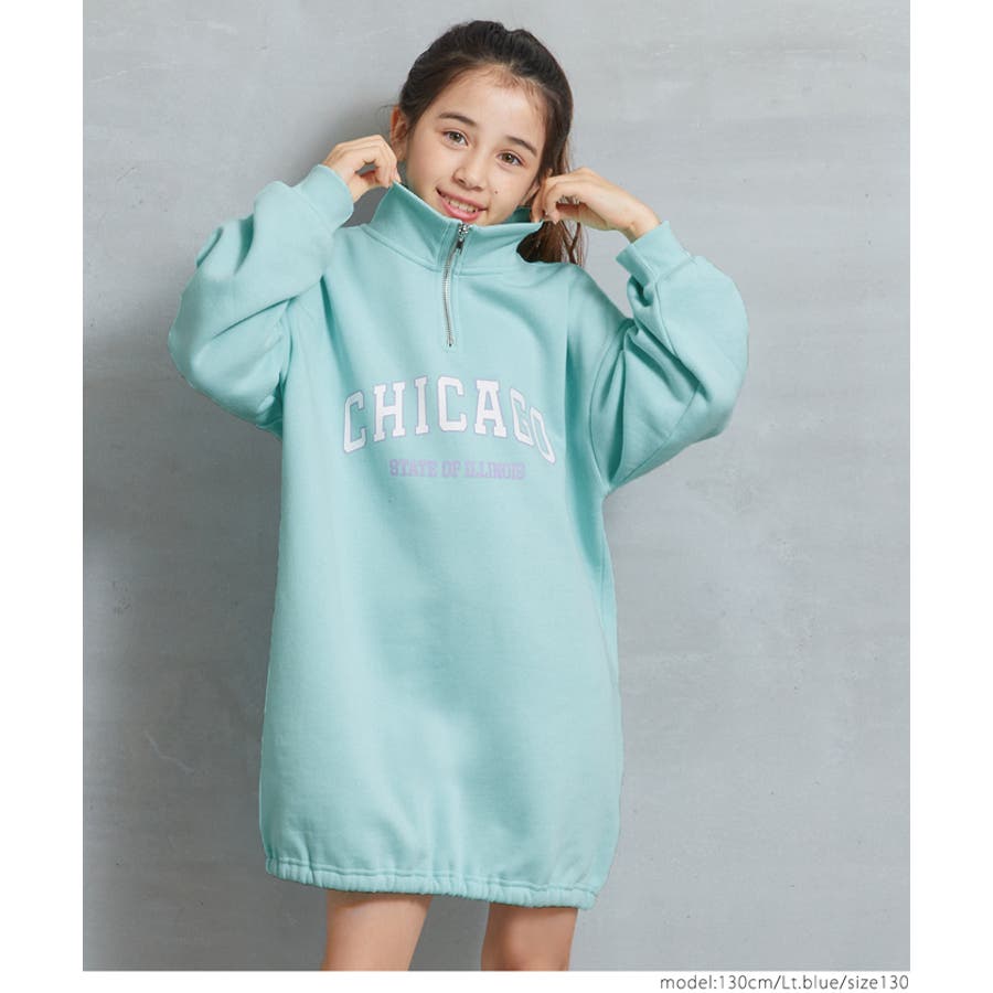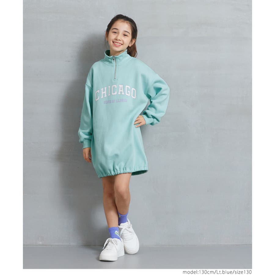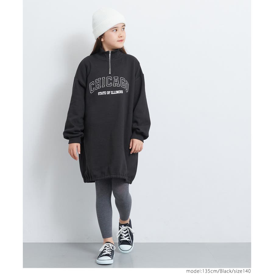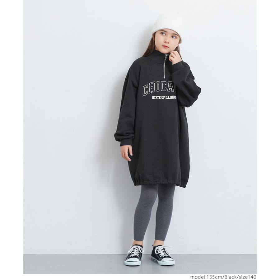 裏起毛ジップアッププリントワンピース キッズ