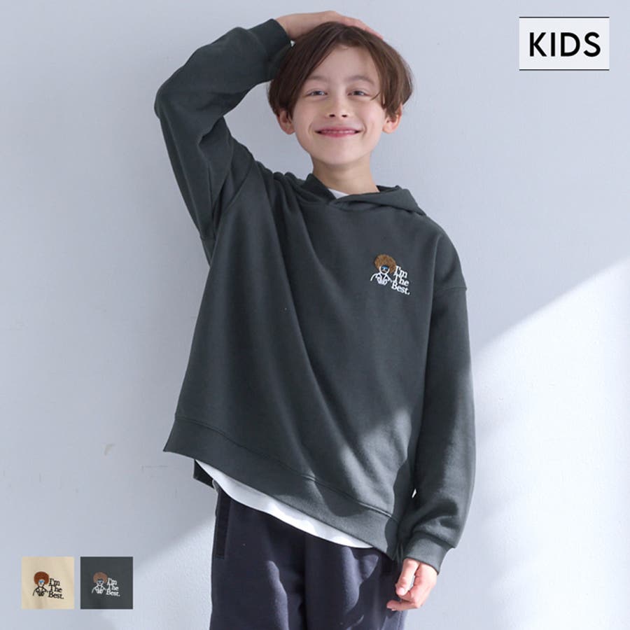 裏毛胸刺繍プルパーカー キッズ