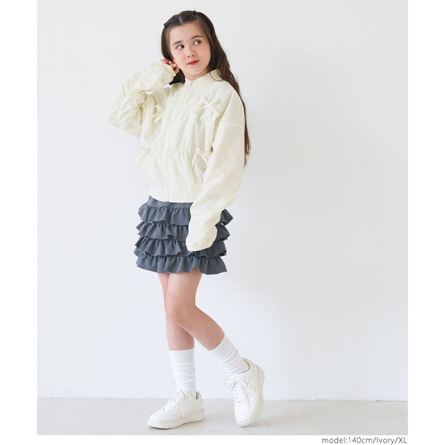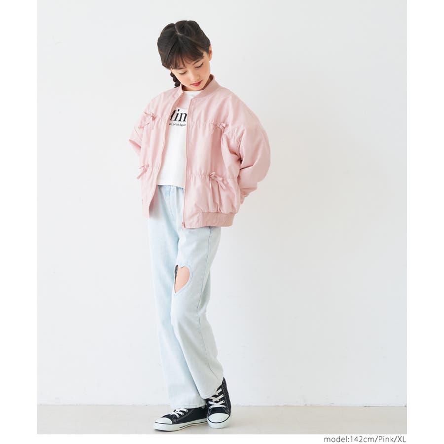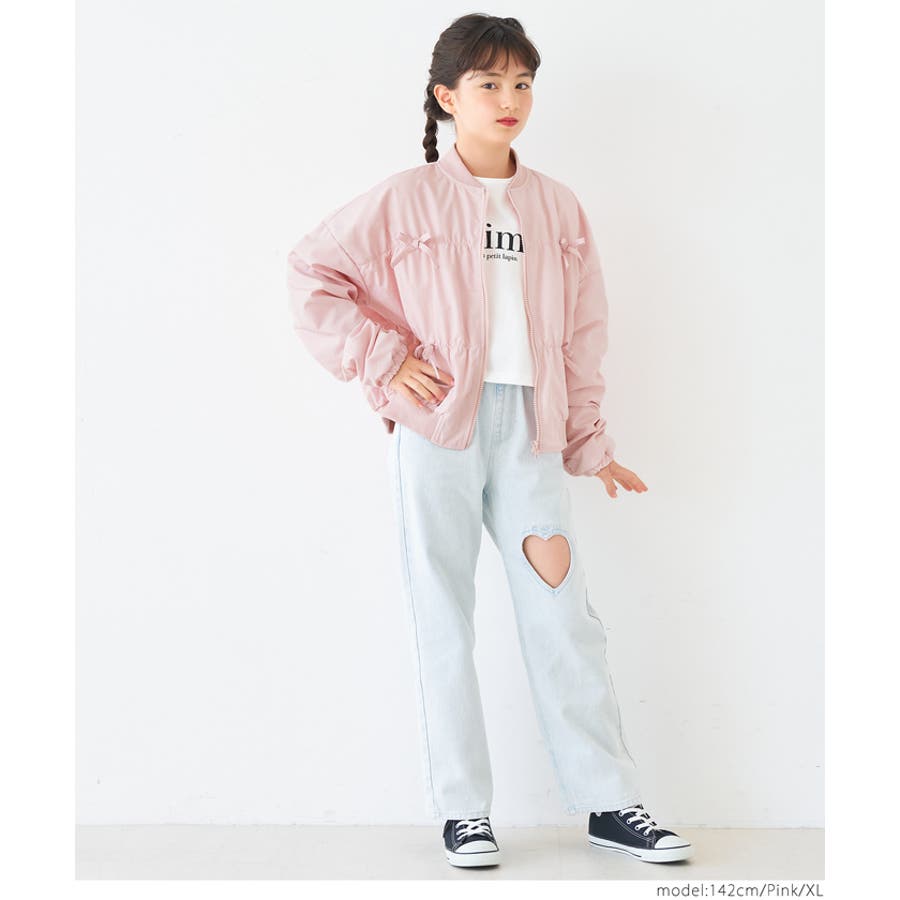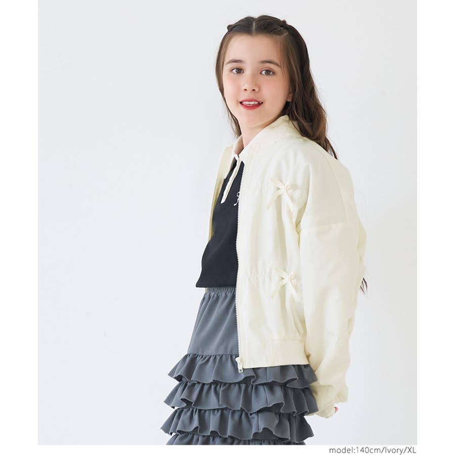 ジュニア アウター ブルゾン リボン ファスナー 上着 羽織 韓国風 学校着 おしゃれ着 普段着 女の子 ガールズ コカ COCA coca COCA coca