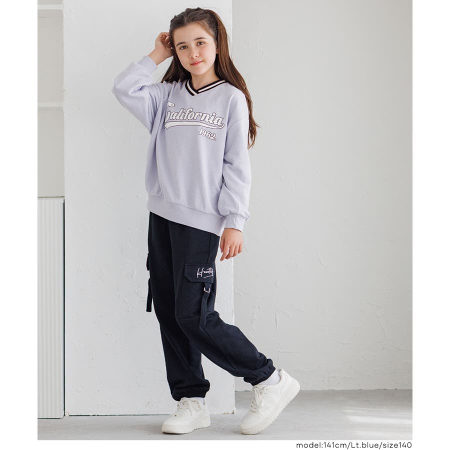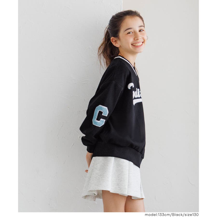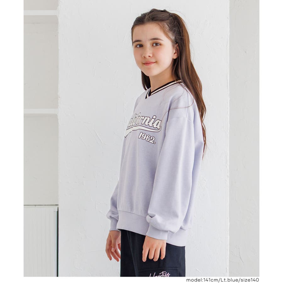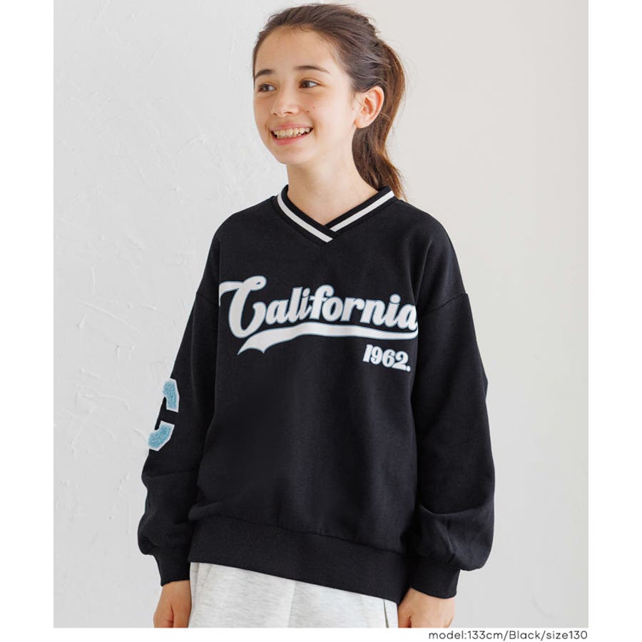 ジュニア トップス ワッペン スウェット リブ ロゴ 英字 アルファベット Vネック 学校 女の子 ガールズ 120 130 140 150 COCA