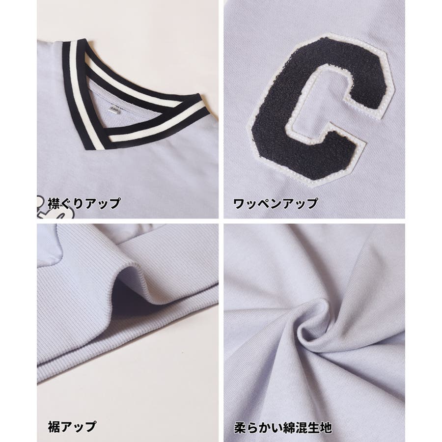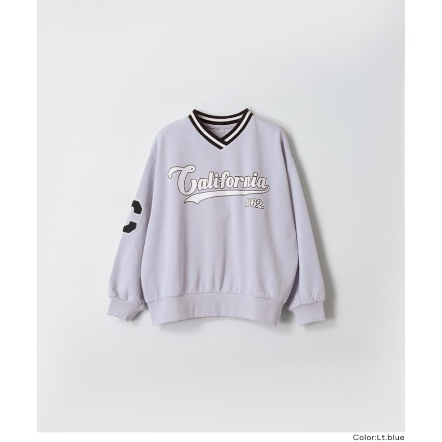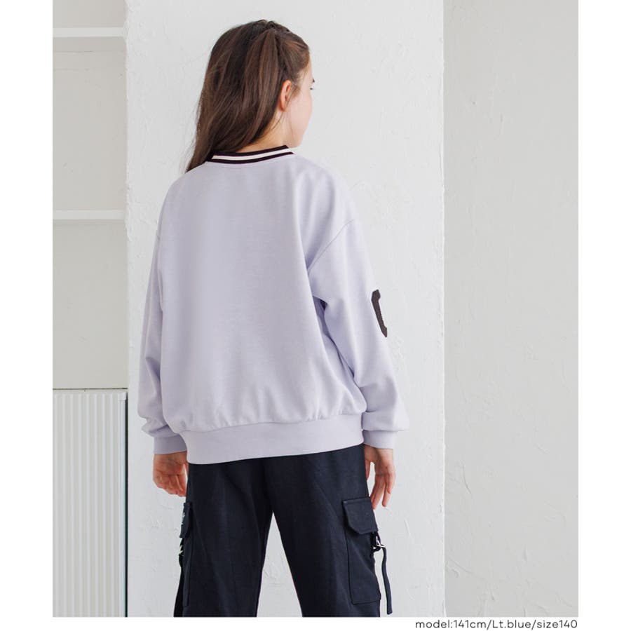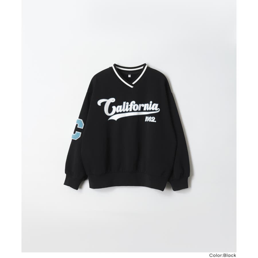 ジュニア トップス ワッペン スウェット リブ ロゴ 英字 アルファベット Vネック 学校 女の子 ガールズ 120 130 140 150 COCA