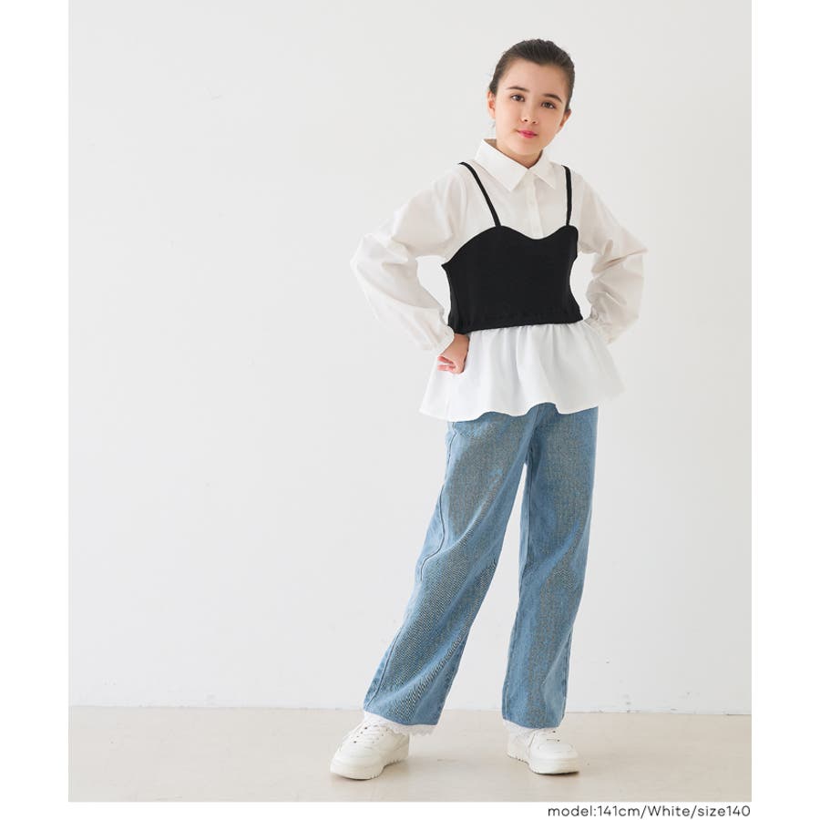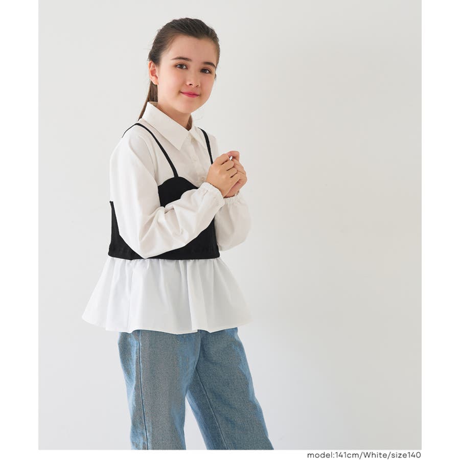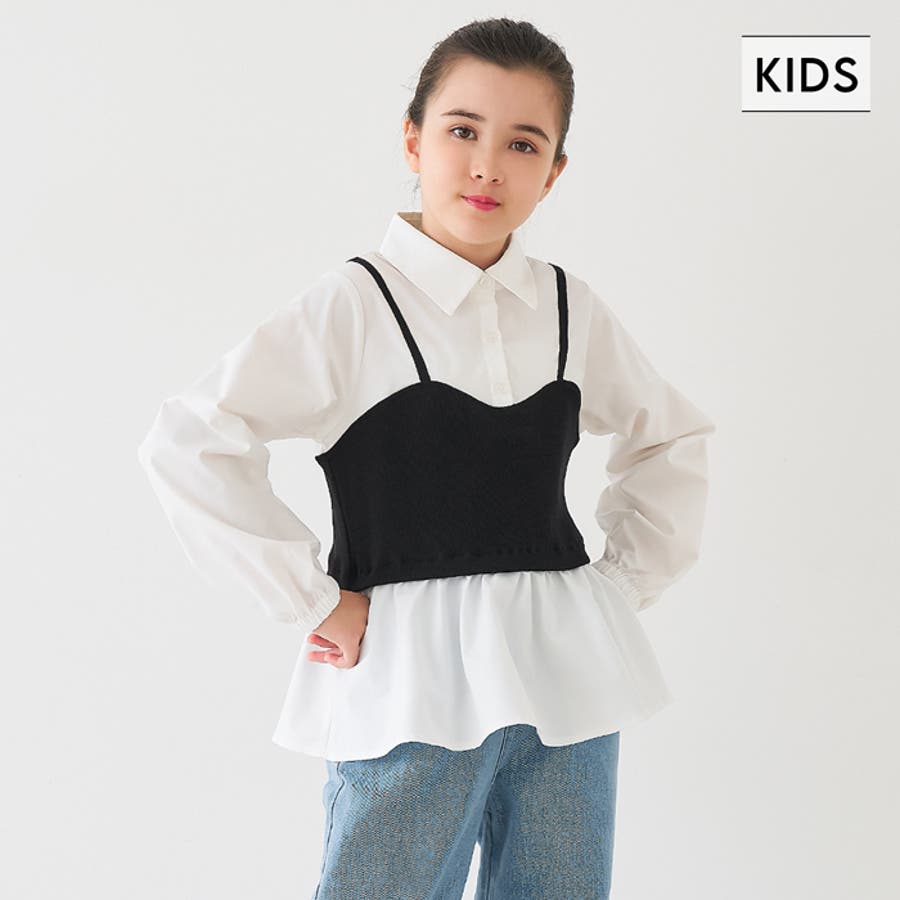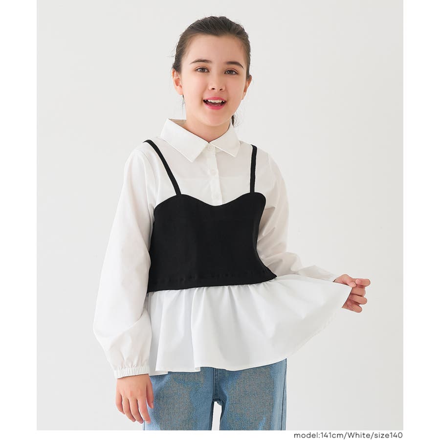 ジュニア トップス シャツ ビスチェ ドッキング 長袖 ドッキングシャツ ボタン レイヤード 重ね着風 女の子 ガールズ 120 130 140 150 コカ COCA coca COCA coca