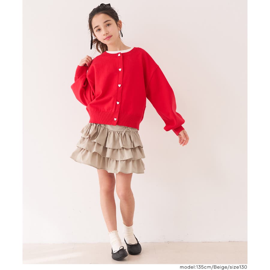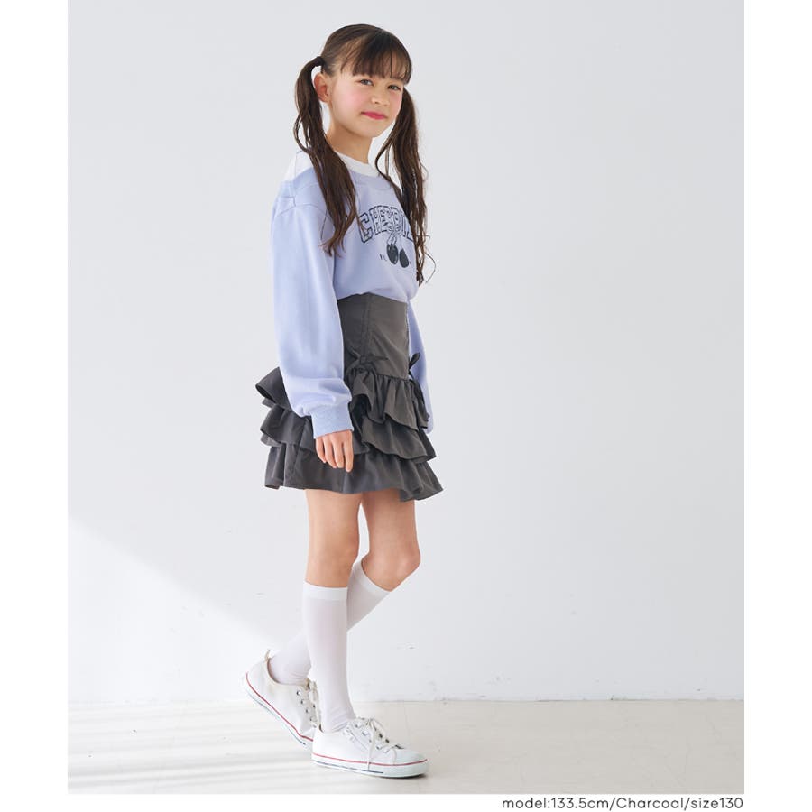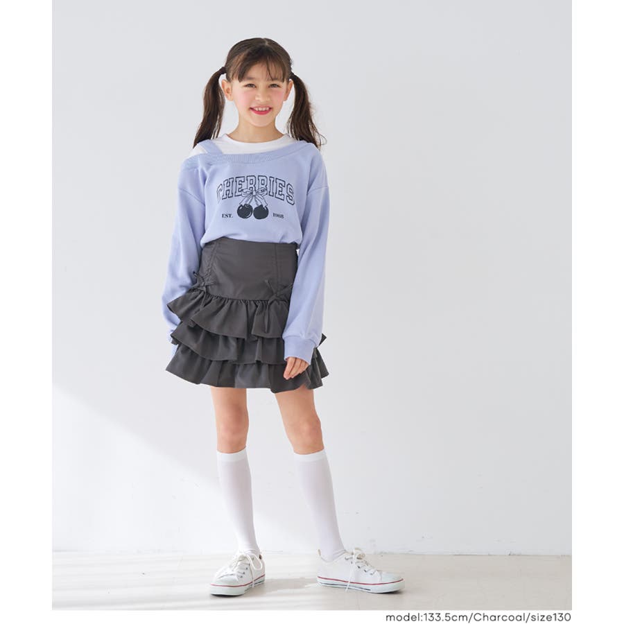 段切替のティアードデザインが特徴の、キッズ用ミニスカート。