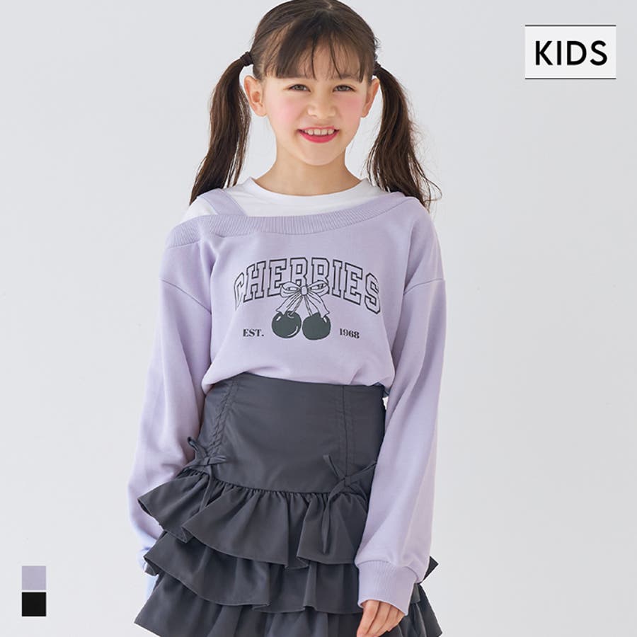 ジュニア ワンショル ワンショルダー 肩見せ 長袖 肩だし 通園 通学 お出かけ カジュアル トップス レイヤード 女の子 韓国 スウェット 120 130 140 150 COCA