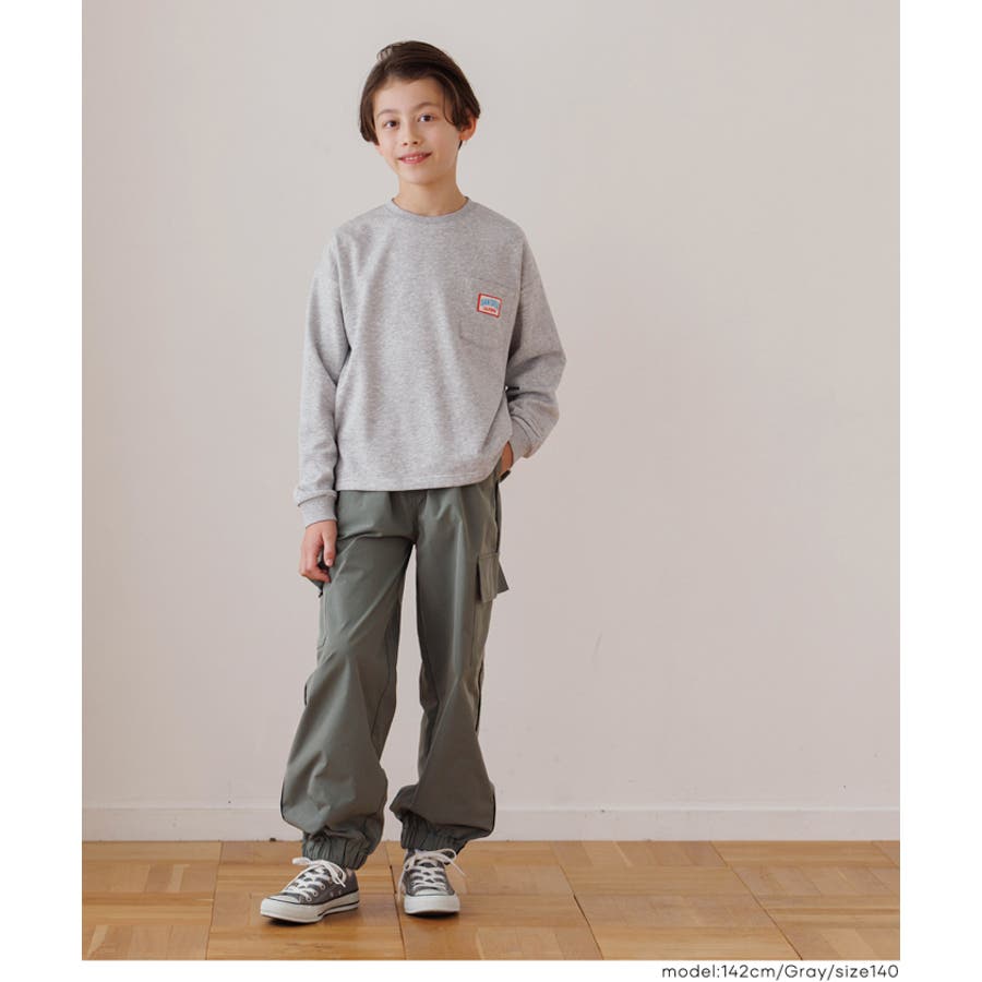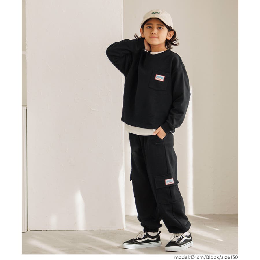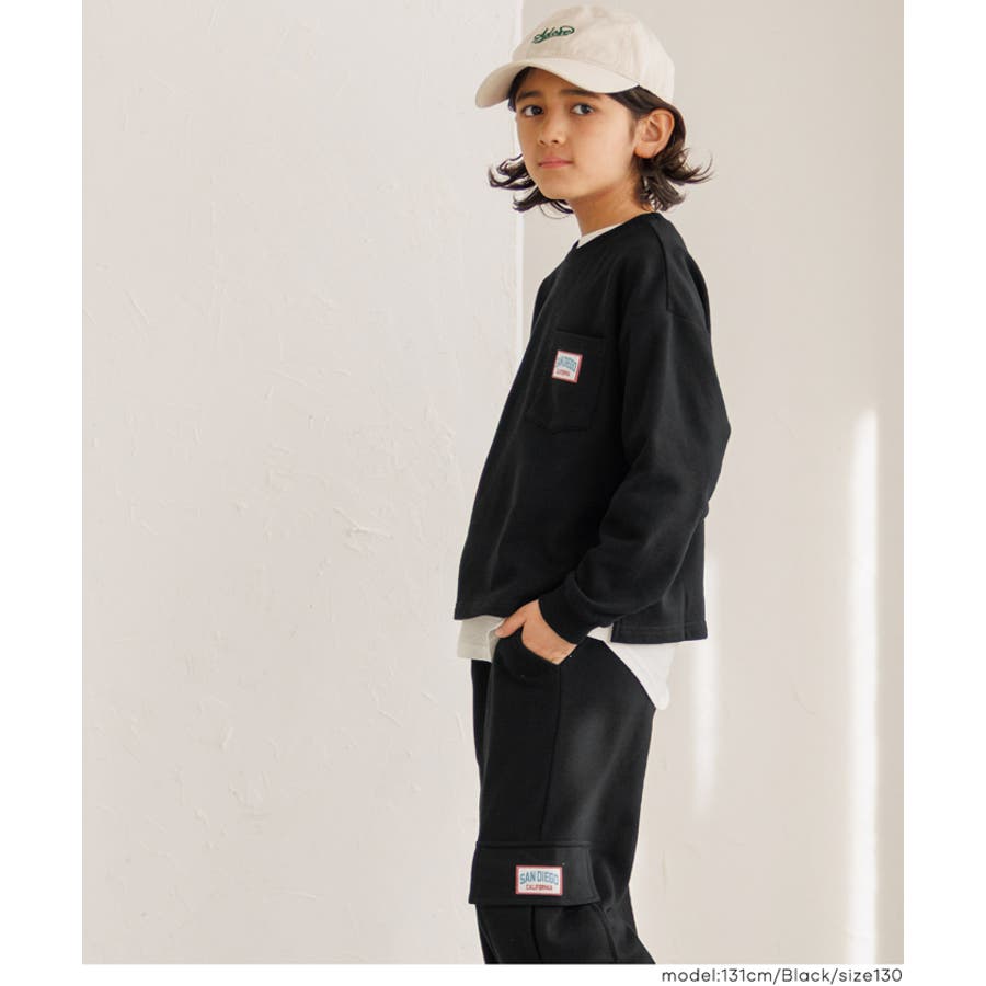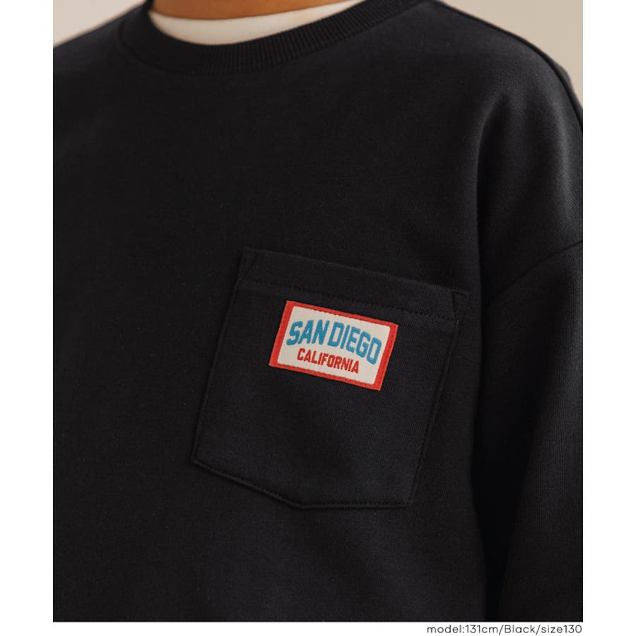 ジュニア トップス スウェット 胸ポケット プルオーバー 裏毛 ワッペン ロゴ 英字 ラウンドネック リブ スリット 長袖 男の子 ボーイズ 120 130 140 150 COCA