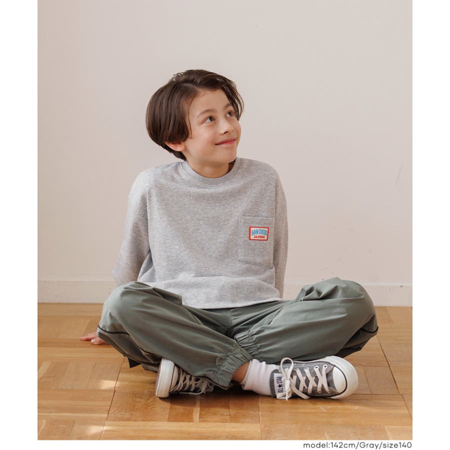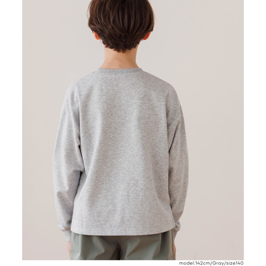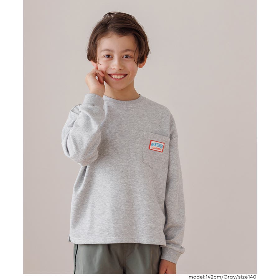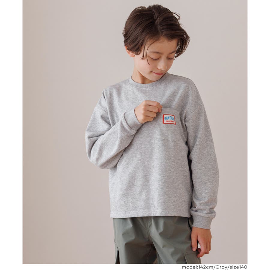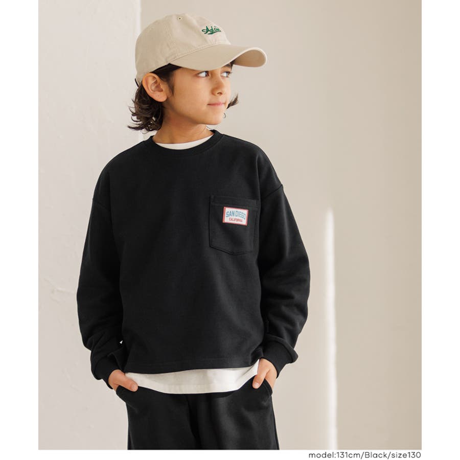 胸ポケットのネームワッペンがワンポイント。毎日使えるキッズスウェットトップス