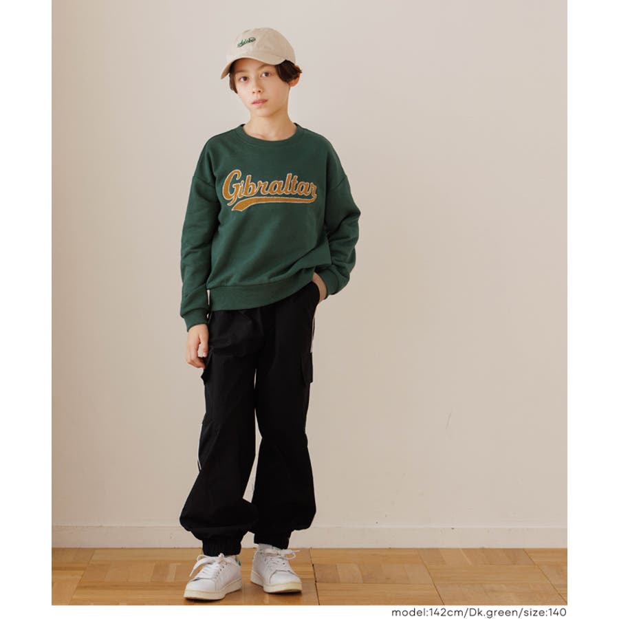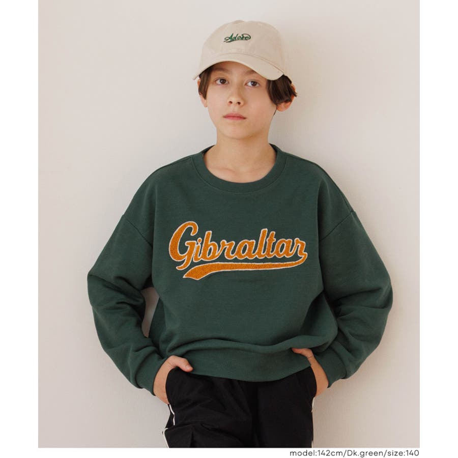 立体サガラ刺繍が存在感◎ カレッジ風デザインのキッズスウェットトップス