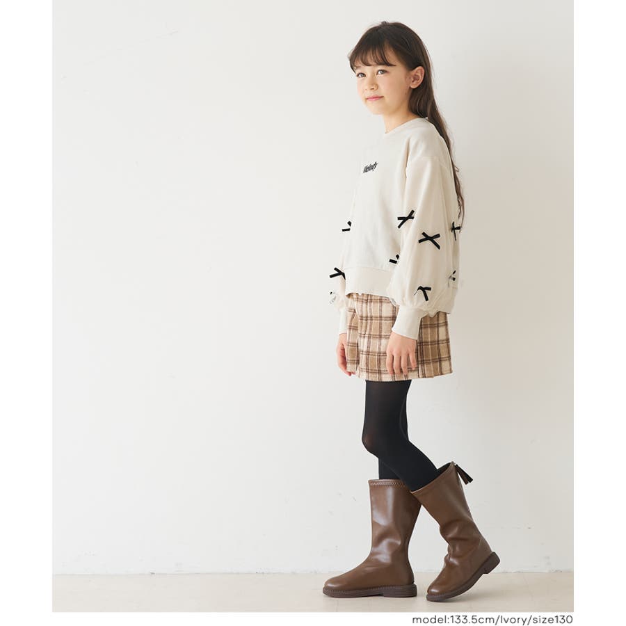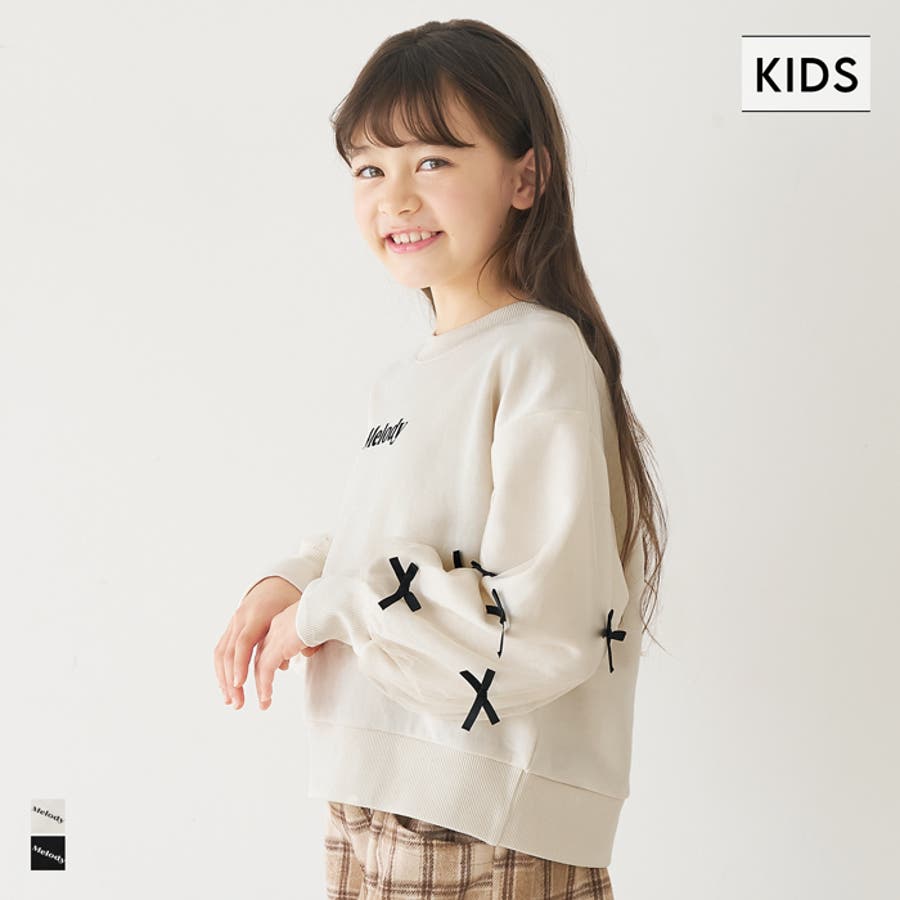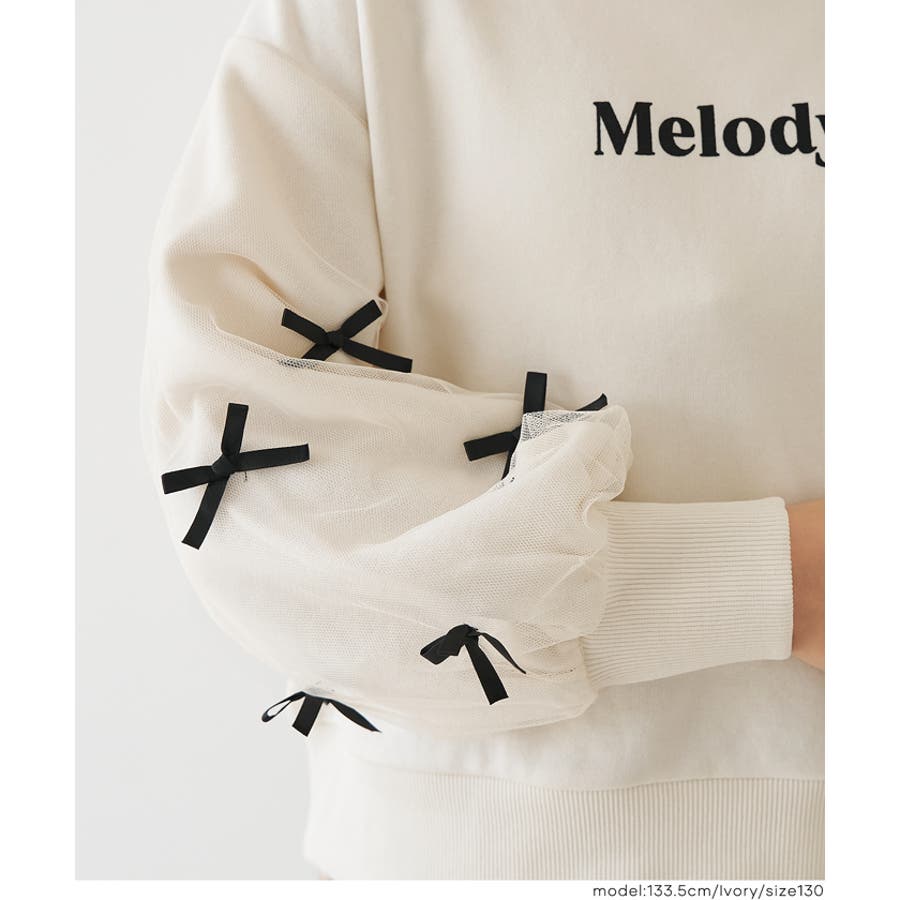袖のチュールリボンがとびきり可愛い。ガーリーに着こなせるキッズスウェットトップス