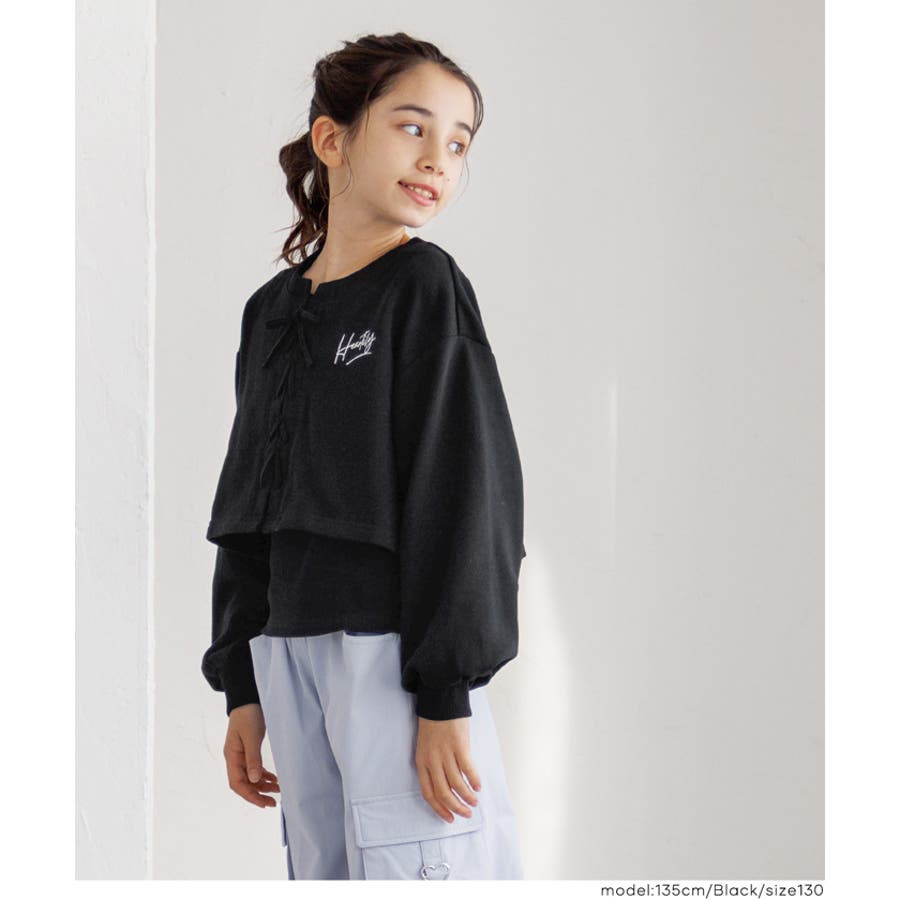 ジュニア トップス スウェット トレーナー リボン タンクトップ セット 2点セット カジュアル シンプル ロゴ ガーリー 重ね着 レイヤード 女の子 120 130 140 150 COCA