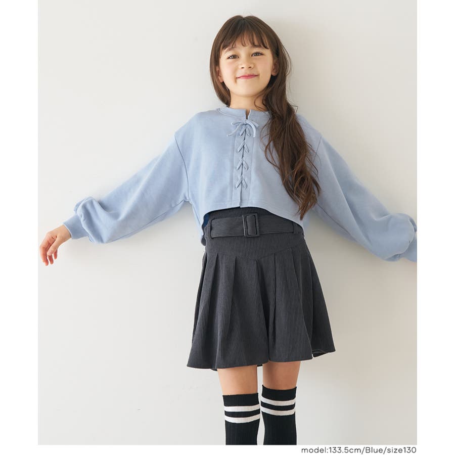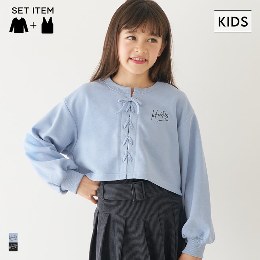 レースアップ×タンクの重ね着風。簡単にガーリーコーデが完成するキッズ2点セット